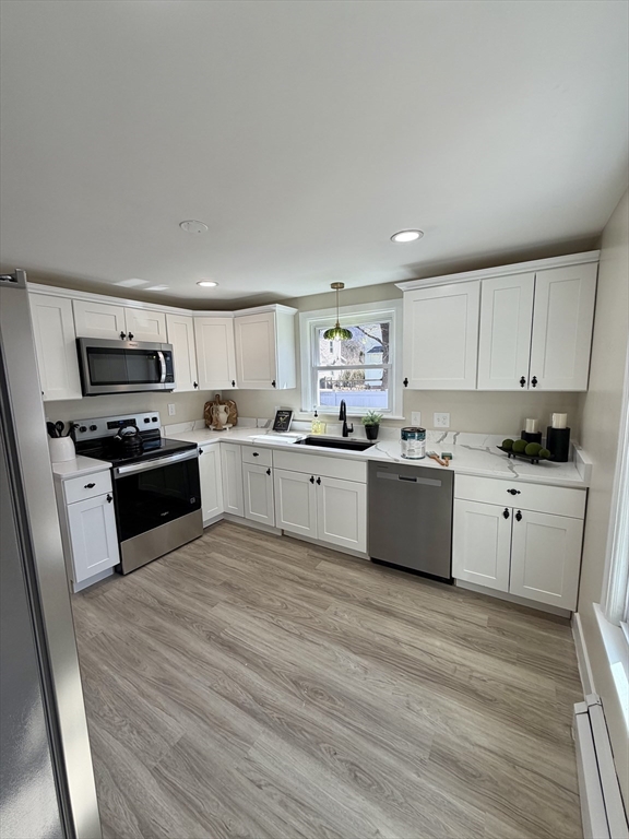 If you’ve been waiting for something special in Easthampton, this is it. This fully renovated 3-bedroom, 1-bath home offers 1,264 sq ft of well-designed living space near the base of Mount Tom on the quiet Easthampton side. The setting is peaceful and scenic.Inside features a brand new kitchen and bathrooms, polished floors, updated electrical, plumbing, and heating, plus new windows and doors. The finished, carpeted basement adds valuable bonus space. The layout is open, clean, and comfortable.Outside includes an oversized 2–3 car garage and a solid yard with room to enjoy. The location offers privacy while staying close to local amenities.Homes in this area rarely come up and move quickly. Book your showings today!