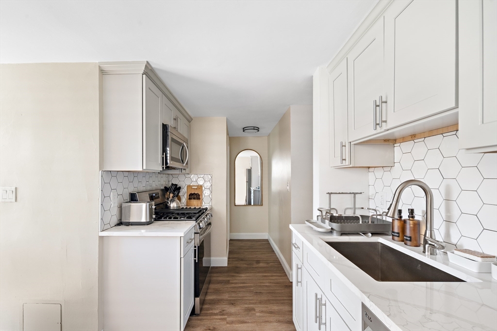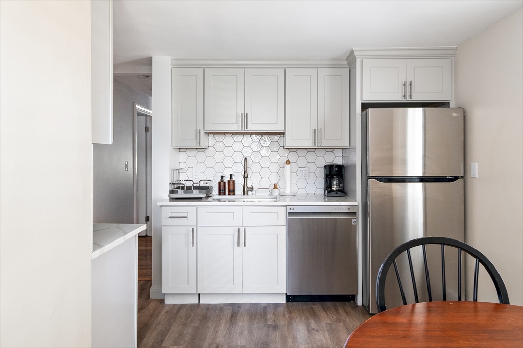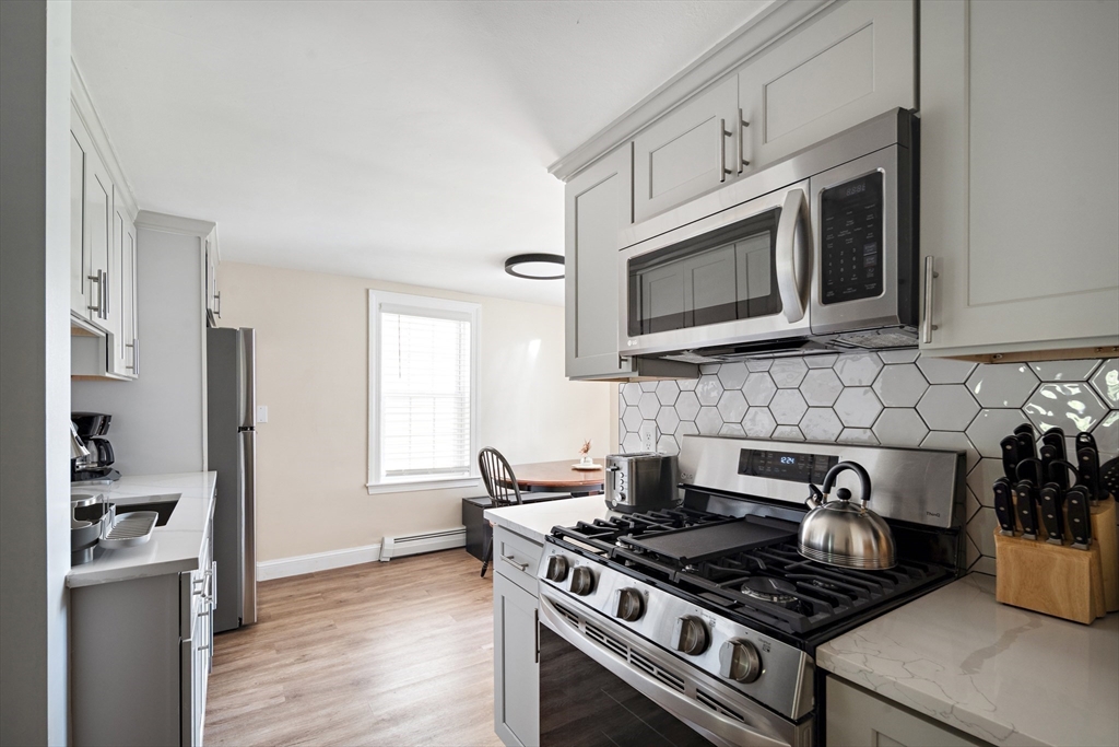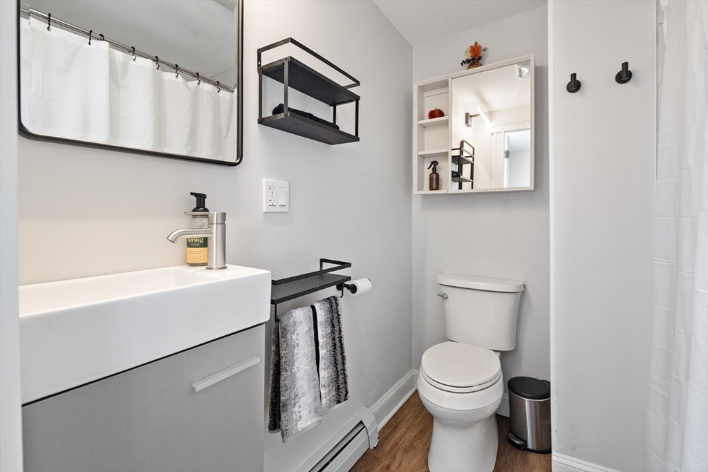Renovated in 2022, this first-floor condo offers modern finishes and efficient living in a highly convenient location. Kitchen features sleek cabinetry, quartz countertops, stainless steel appliances, tile backsplash, large undermount sink with disposal, dishwasher and microwave. The bathroom includes a full tub with tiled shower surround. Heating and cooling are provided by a ducted heat pump system, plus high-efficiency Navien baseboard heating. The building has been insulated for energy efficiency. Additional highlights include private washer and dryer in the basement, shared patio and yard, and a budget-friendly HOA fee covering snow removal, landscaping, water/sewer and master insurance. Pet friendly. Unit can be sold fully furnished for a turnkey opportunity. Located next to Mack Park less than a mile from downtown Salem and the MBTA Commuter Rail, while outside the busiest tourist areas. Excellent value for a renovated condo with easy access to everything Salem has to offer!