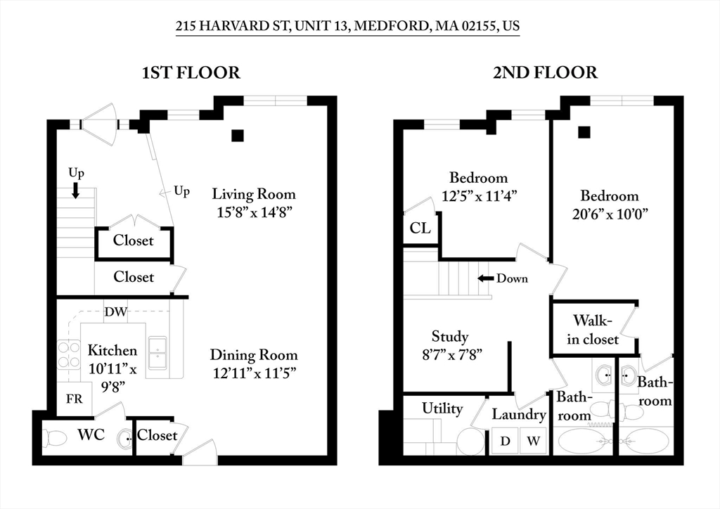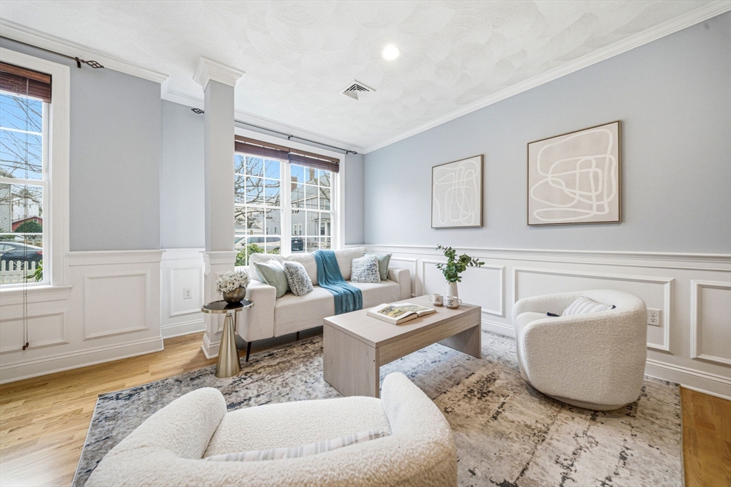 Exceptional two-level townhouse-style residence at 215 Harvard St #13, offering the perfect blend of timeless design and modern livability. The main level features an inviting living space with crown molding and a beautifully appointed kitchen with shaker cabinetry, backsplash, and peninsula seating, ideal for both everyday living and entertaining, plus a convenient half bath. Upstairs, the thoughtfully designed layout offers two bedrooms plus a dedicated office/den, including a primary suite with ensuite bath and an additional full bathroom. Enjoy a rare suite of resort-style amenities including a fitness center, indoor basketball court, game and club rooms, children’s playroom, pet park, and roof deck with patio. Ideally located moments to Davis, Ball Square, Assembly Row, Medford Square, and Tufts, with easy access to I-93. A standout offering in today’s market.