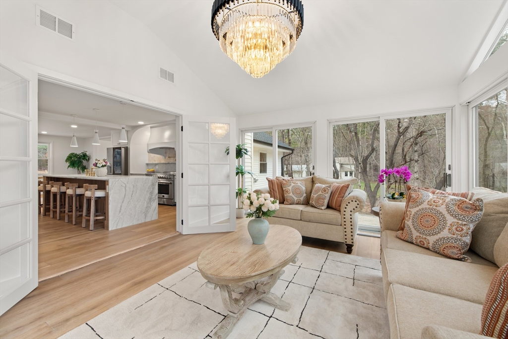 Your search ends here! Discover this stunning 5-bedroom, 3.1-bath custom estate designed for both luxury and functionality, featuring high-end finishes throughout. The main level offers a bright living room with a cathedral ceiling, a spacious primary suite with walk-in shower, floating tub, and walk-in closet, plus a dining room and gourmet kitchen with white cabinetry, stainless steel appliances, and a 10-ft island. Additional highlights include a coffee station, half bath with laundry, and a four-season sunroom. The second-floor features three generously sized bedrooms with walk-in closets and a full bath. The walk-out basement includes a large family room, full bathroom, and office. Extensive upgrades include new septic system, well tank, driveway, landscaping, roof, porch and dormer with metal roofing, garage door and motor, Trex deck with cable railing, spray foam insulation, heat pump, electrical, plumbing, hardwood floors, custom kitchen, appliances, and updated bathrooms.