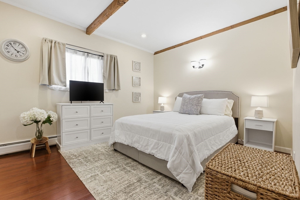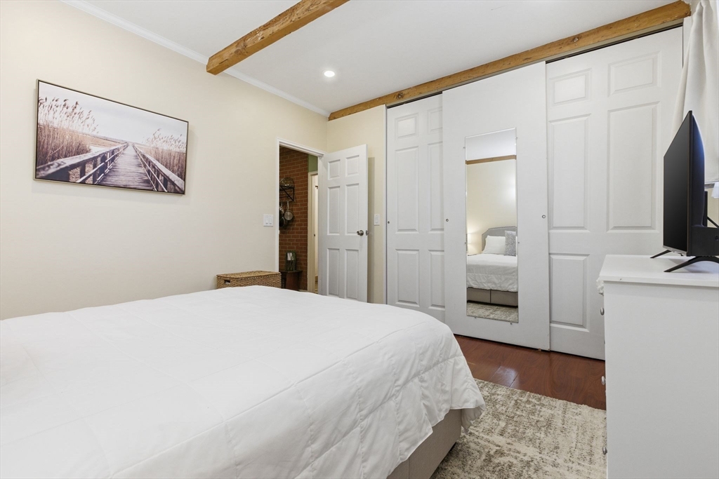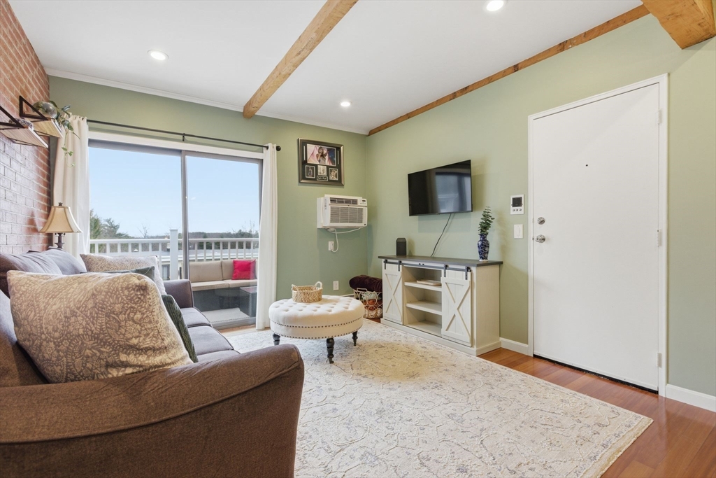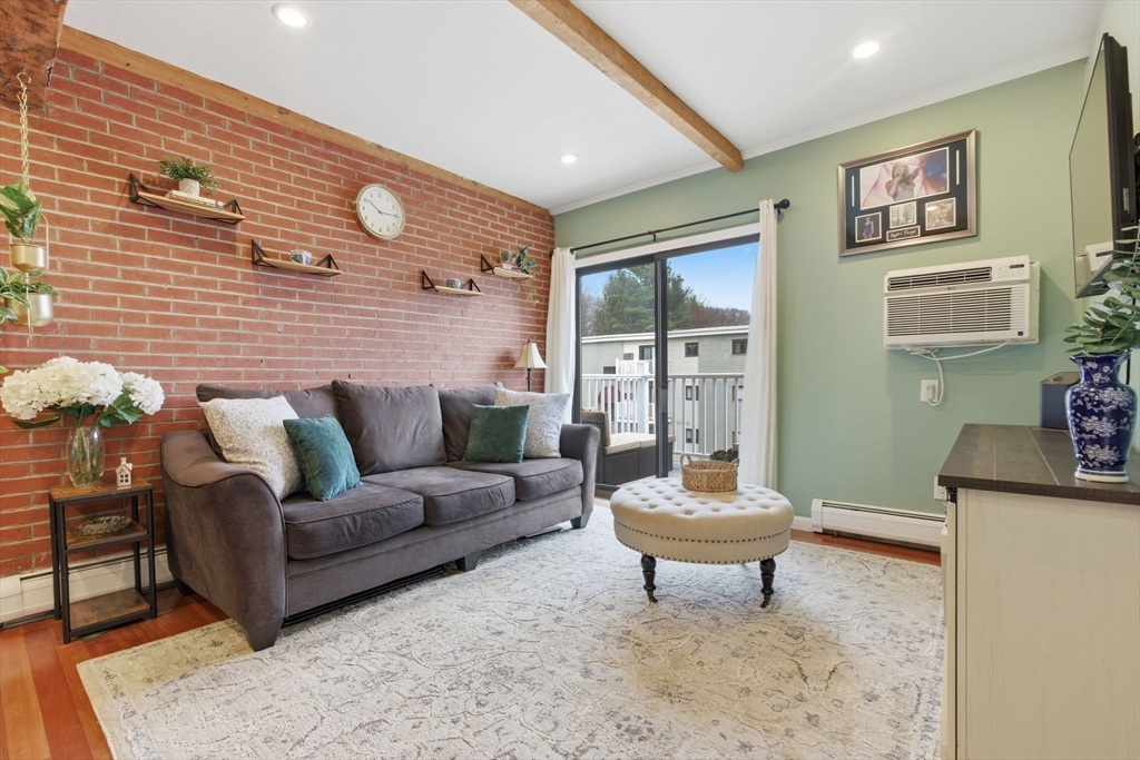 Sunny, top-floor 1-bedroom, 1-bath condo offering a blend of character and modern updates. This move-in ready home features an open layout with seamless flow between the living, dining, and kitchen areas. Beamed ceilings and exposed brick add charm, while the updated kitchen offers ample cabinetry, gas cooking, a wine fridge (to convey), and a recently upgraded 100-amp electrical panel. The open and comfortable living area make for easy everyday living. Step out onto the private composite balcony, an ideal extension of the space during warmer months. Additional highlights include one assigned parking space, common laundry, and condo fees that cover heat and hot water. Well-maintained association. Rentals are currently at capacity, making this an excellent opportunity for an owner-occupant, ready to start building equity. Conveniently located just off Route 20 with easy access to shopping, grocery store, and major highways.