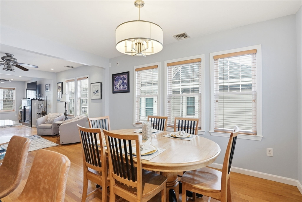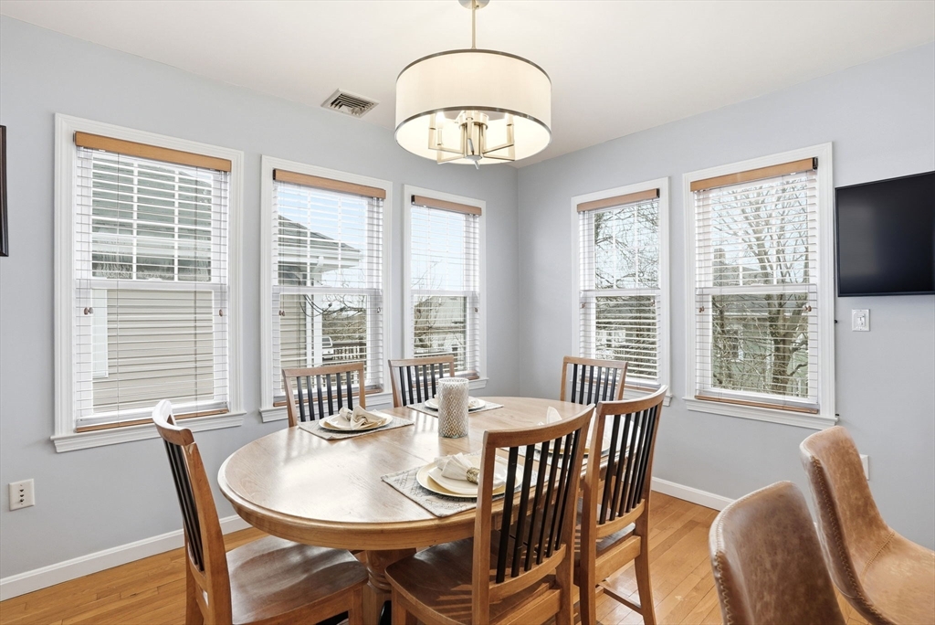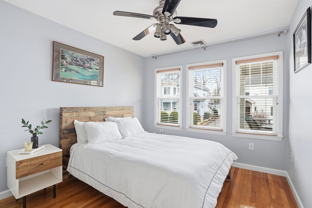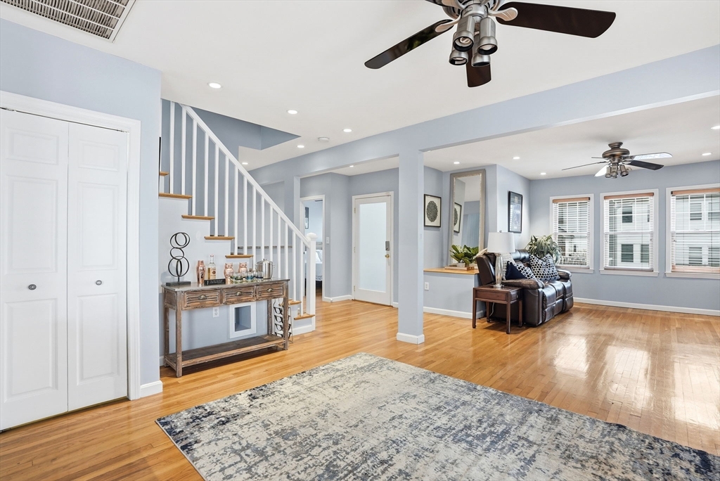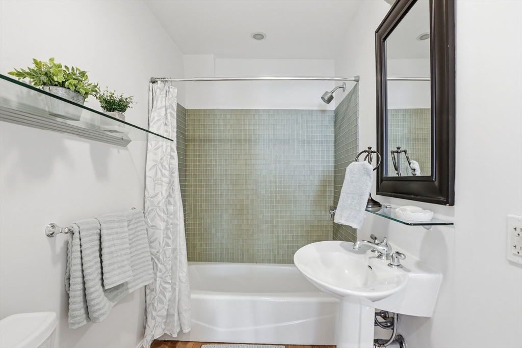 Pope's Hill Beauty! This unique upper duplex offers nearly 1700 sq feet of living space, one of the biggest kitchen islands you'll ever see in a condo, front and back decks and garage parking! The entire top floor consists of a sprawling master suite with a bathroom featuring a soaking tub and separate shower and great storage, including a full wall of closets. The space provides a separate sitting area or room for a home office with a gas stove. The open layout of the main level makes for great entertaining. This terrific Neponset location lends itself to easy commuting options and proximity to shopping, parks and walking trails like local favorite Pope John Park. Adams Village is just a few blocks away with a variety of amenities and restaurants.