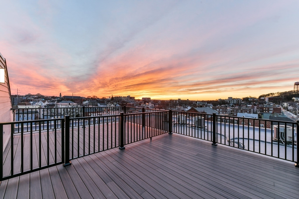 Live at the top at Parker Place, Circa 2018! 2BR/2BA w/ DEEDED GARAGE PARKING, PRIVATE BALCONY COMMON ROOF DECK & ELEVATOR & STORAGE! Open kitchen/dining/living; bedrooms tucked back for privacy. Hardwood floors, high ceilings w/ recessed lighting & abundant natural sunlight. Chef’s kitchen w/ quartz counters, center island, stainless steel appliances & gas range. Primary suite w/ large closet, en-suite bath, double vanity, frameless glass shower, rain & handheld shower heads, plus sliding glass door to balcony. In-unit W/D. Gas furnace w/ on-demand hot water & Central A/C. Professionally managed & Pet Friendly. Easy access to Boston via Silver Line, Commuter Rail, MBTA #116, #117 & #111 Express, Logan Airport, shopping & dining. Close to Chelsea Commons & Mystic Mall.