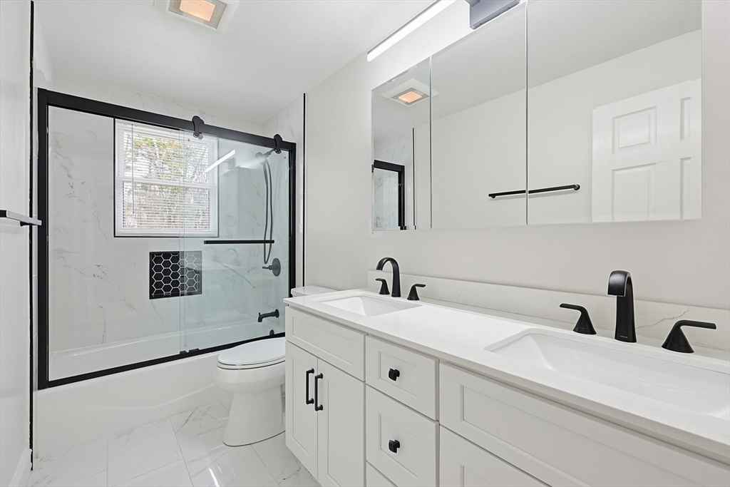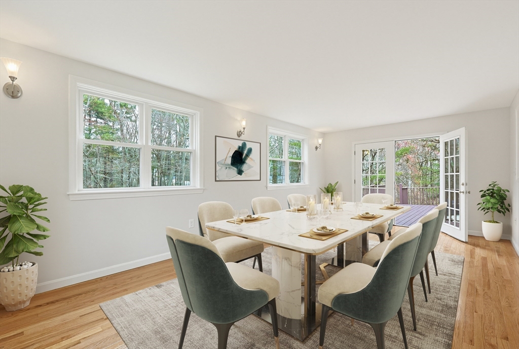 NEW and MOVE RIGHT IN! CERTIFIED LEAD-FREE! Welcome to this SPACIOUS and beautifully maintained 11 ROOM, 3-4BR, 3BA home, that offers a FLEXIBLE OPEN FLOOR PLAN well-suited for comfort and ease, entertaining or MULTI-GENERATIONAL LIVING. The main floor plan creates a seamless flow between the sun-drenched living room, the updated eat-in-kitchen, and the oversized dining room. Gleaming hardwood floors extend throughout the main level, the primary BR enjoys its own bath and the tastefully updated hall bath offers both style and comfort. The generously sized lower level rooms provide add'l flexible space perfect for family room, home office, exercise room or guest suite w/ full bath. The backyard offers privacy ideal for gardening, relaxation and entertaining. Situated on a cul-de-sac in a sought-after neighborhood, this property offers the perfect balance of tranquility and convenience, with easy access to major commuting routes, shopping, and all the wonderful Town of Sharon amenities.