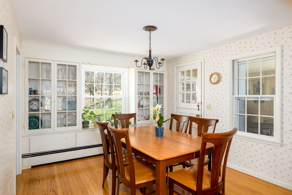 Welcome to this charming Cape-style home nestled in a well-established neighborhood. The 1st floor features beautiful hardwood floors that flow throughout the home. A formal DR w/classic built-ins adding timeless appeal. The open kitchen features granite countertops & a breakfast bar overlooking the den. Sun drenched LR incs one of two wood burning FPs perfect for everyday living & entertaining. (2) of the (5) bdrms are on the 1st floor inc the primary w/ adjacent updated bath, 2nd FL offers (3) additional bdrms 2nd updated bath plus a versatile common rm complete w/ built-in bookcases, ideal for, study area, or space, A bright four-season room provides year-round enjoyment & seamless access to the backyard, where you will find a lovely patio & outdoor space are perfect for your season enjoyment. Recent improvements inc: young heating system & roof, most of the windows have been replaced as well .With its thoughtful layout, charming details, & desirable location, this home wont last