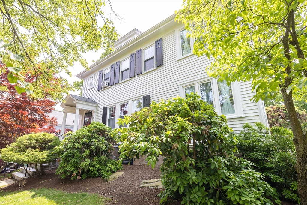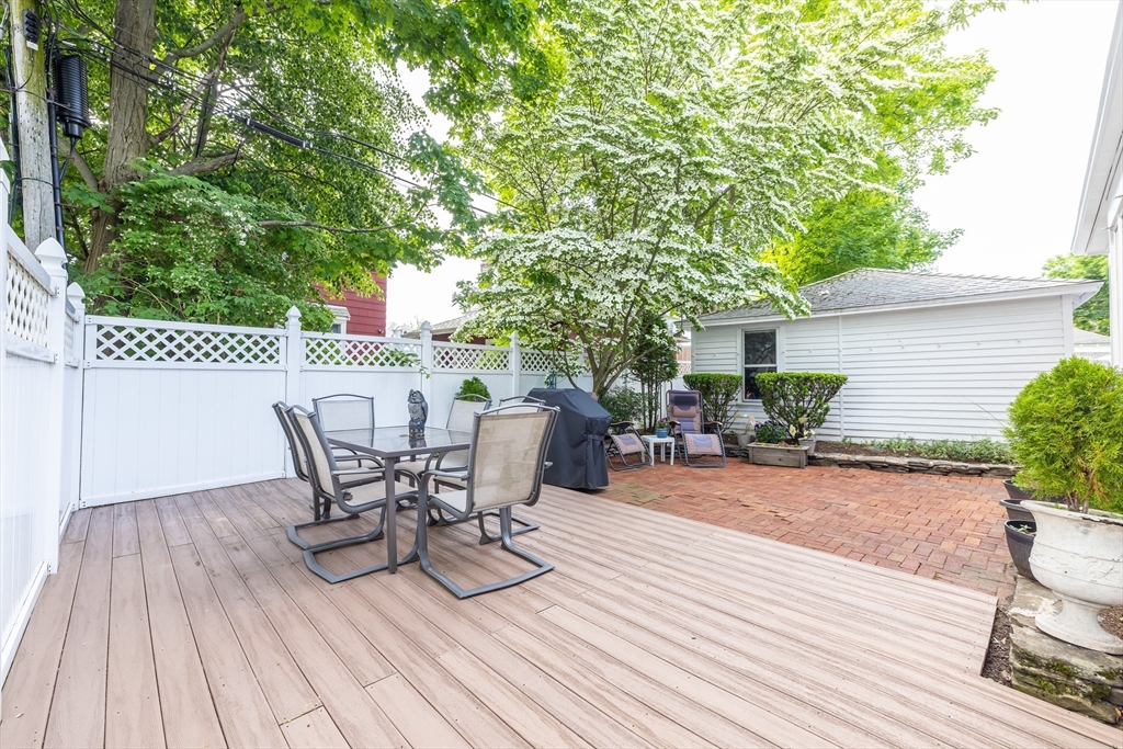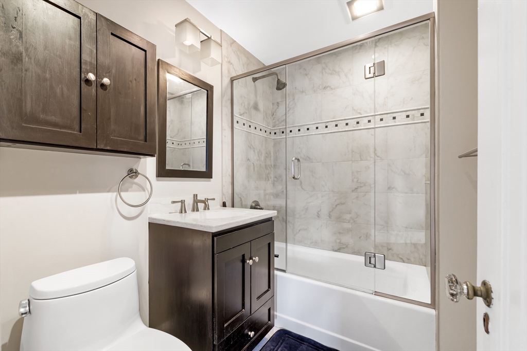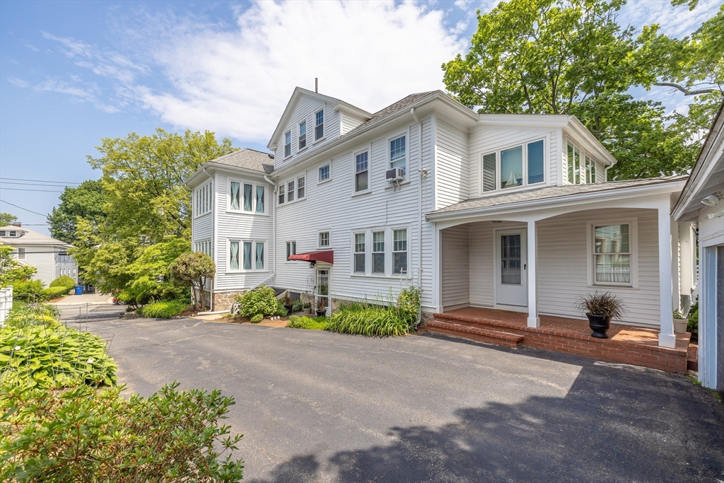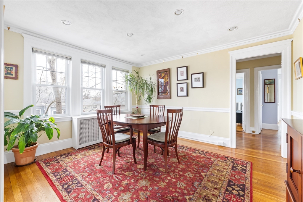 Welcome to this large, unique, sun-drenched two-story condo in a prime West Roxbury neighborhood, close to shopping, restaurants, medical area, and public transportation. Rich with character, including, crown and picture moldings, chair rails, original carved mantel, and more. This home has been thoughtfully updated with recessed lighting, built-in bookcases, and a custom-designed kitchen with white cabinetry, quartz counters, stainless appliances, and exceptional pantry storage that complements the elegant details. This home spans 2,100+ sqft over two floors, living more like a single family. Two bedrooms on the main floor, one with an attached office, and a 3rd bedroom upstairs next to a large bonus room that can be converted back to a 4th bedroom as noted in public records. Updated baths, in-unit laundry, a solar-powered skylight, and ample storage with some custom closets. Two deeded parking spots, one garaged. Landscaped, mature gardens, and a lovely backyard patio.