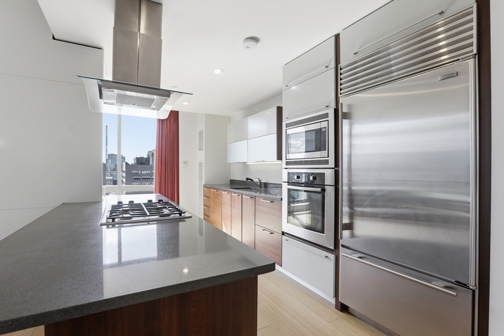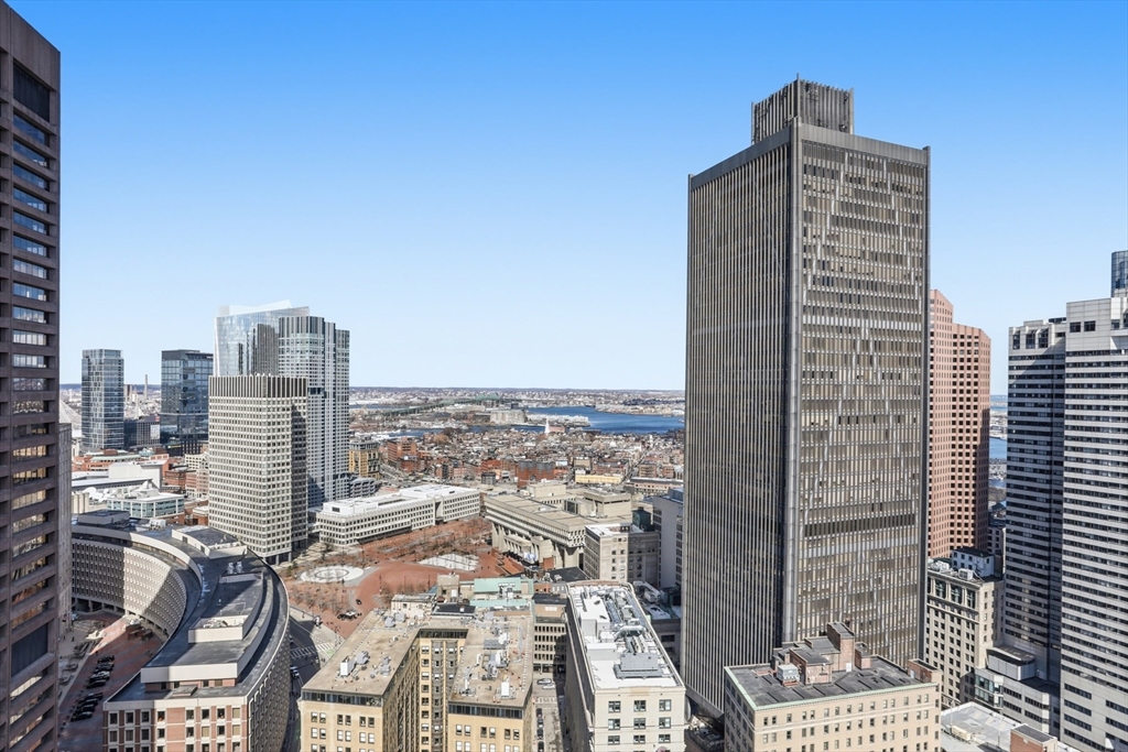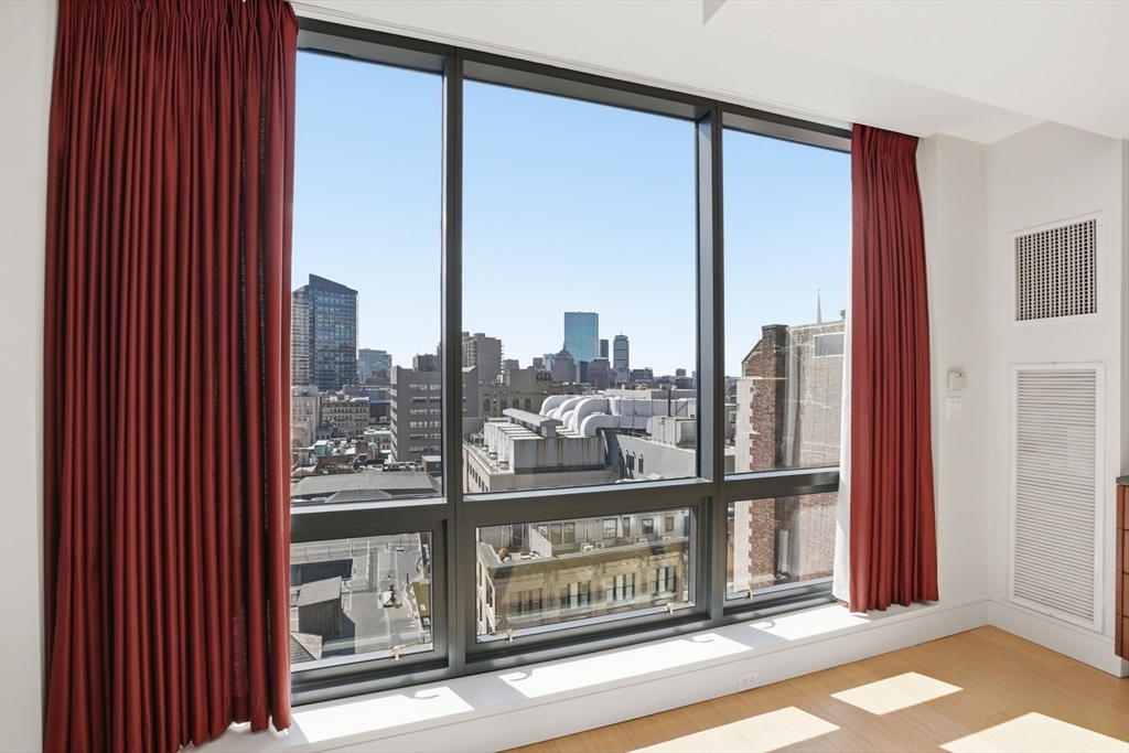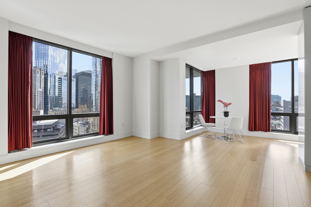 A sun-drenched corner residence with sweeping skyline views, this 2-bedroom, 2-bath home offers 1,378 sq ft of refined high-rise living in the heart of Downtown Boston. Floor-to-ceiling windows frame open views of the Financial District, Back Bay, and the surrounding cityscape, filling the living, dining, and kitchen areas with natural light throughout the day. The open kitchen features a large island with an integrated cooktop, creating a central gathering point for cooking and entertaining. The main bedroom includes an ensuite bath, and both bedrooms enjoy expansive skyline views. Set on a quiet, historic side street, the residence places you steps from premier dining, shopping, theaters, and multiple transit options. The building is celebrated for its luxury amenities, including a four-season pool, rooftop lounge, fitness center, 24-hour concierge, valet garage parking, a library, and a media screening room—all designed to elevate everyday living.