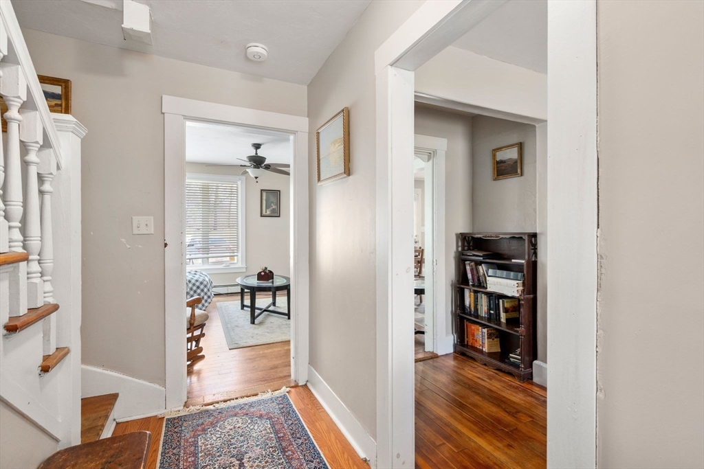 You won't beleive how spacious and charming this pet friendly townhome is! Next to the golf course, and renovated from top to bottom in 2024, this townhome includes a newly updated eat in kitchen with granite countertops, SS appliances, LVP flooring, and shaker cabinets. Convenient first floor laundry room. The large living area features high ceilings, large windows, and hardwood floors. The first floor also includes a cozy den with hardwoods. Updated full bath with tub/shower combo. Up the charming staircase you'll find an enclosed porch that's perfect for a morning cup of coffee and all of your plants! On this level, you'll be happy to see that the beautiful wood floors extend into all three spacious bedrooms that boast period details, ample closet space, and are filled with light. Updated full bath with shower. Huge walk up attic can be finished. NEW oil tank. Deleaded. A charming porch welcomes you to this large townhome. Two deeded spaces. Easy living. Come see!