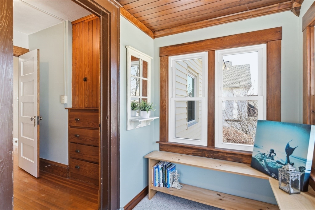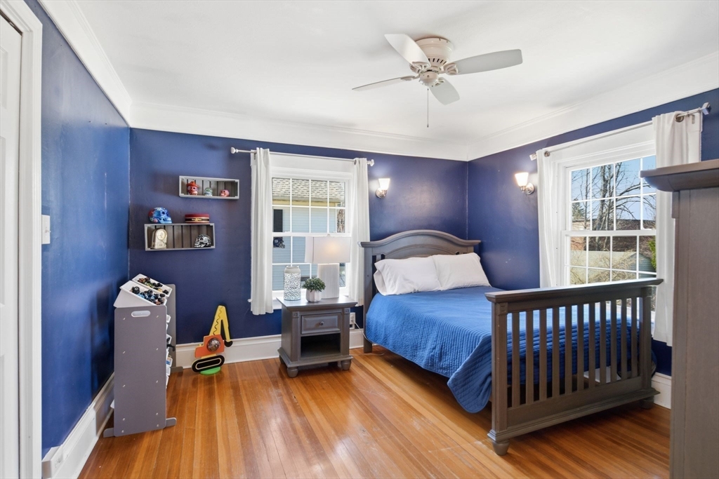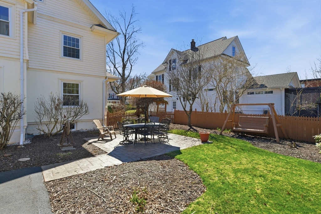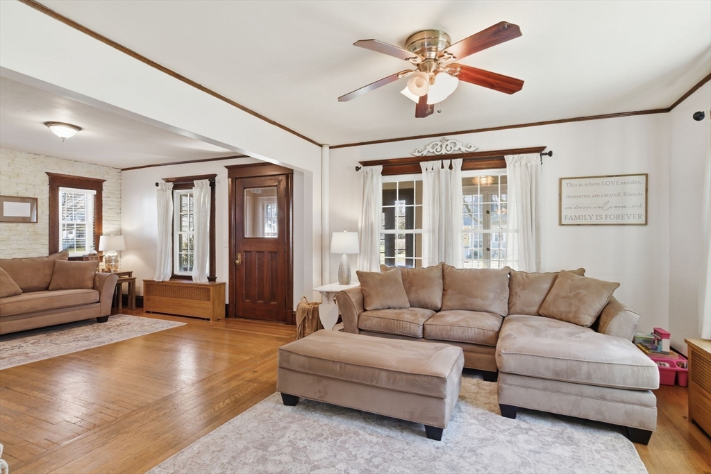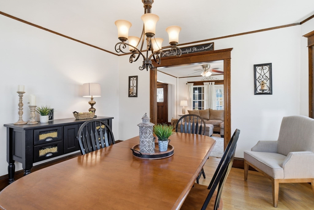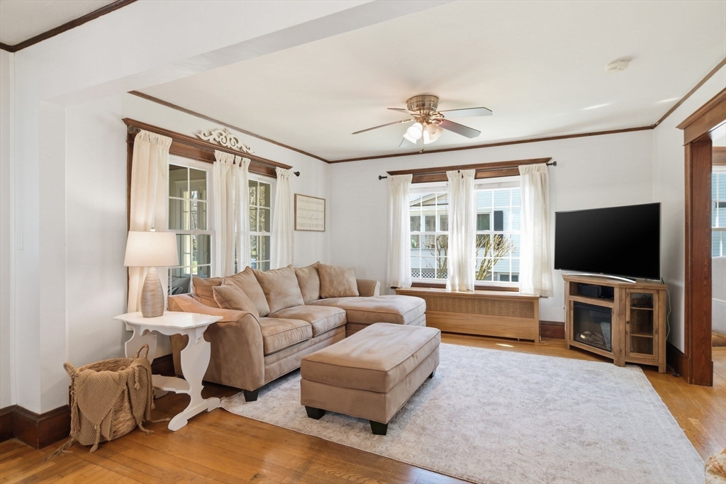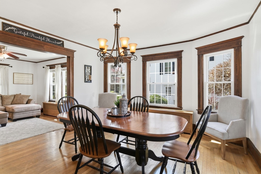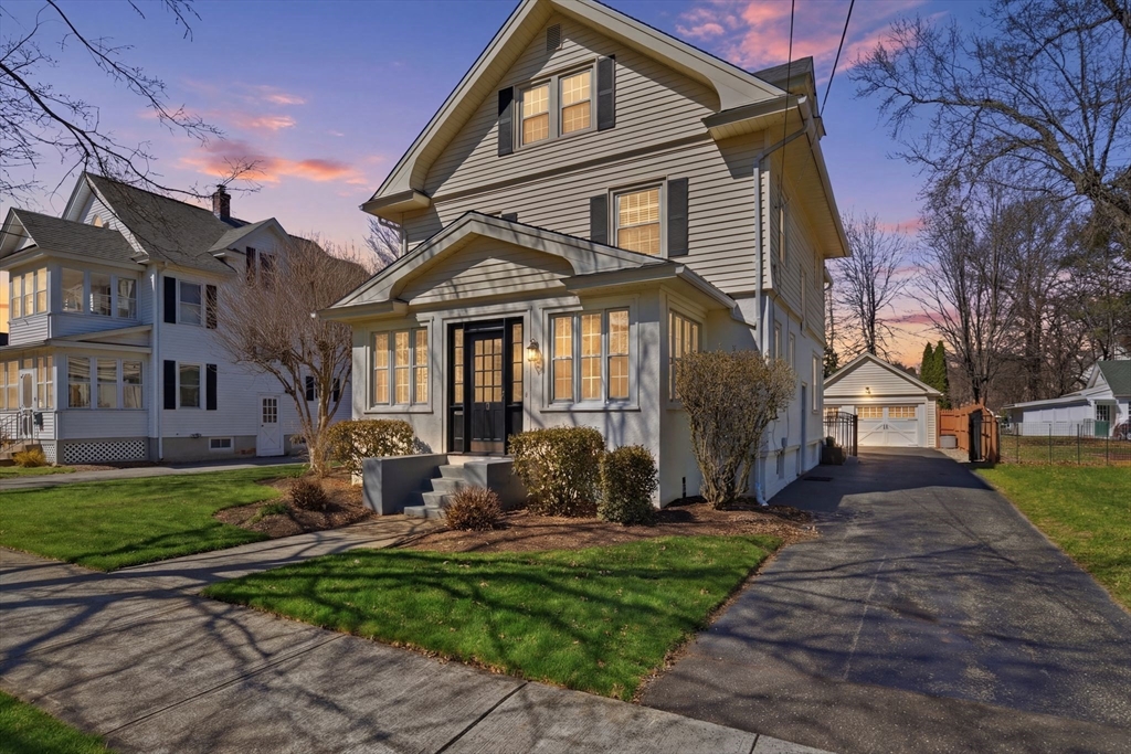 Classic colonial combines timeless charm w/solid structure & generous footprint, perfect for buyers ready to personalize their dream home. Spacious layout features wood floors throughout & beautiful millwork, offering endless opportunities to enhance home's character. Main level boasts tall ceilings, fantastic sight lines & circular flow. Enjoy relaxing in charming & welcoming front porch w/three walls of windows. Living room w/beautiful turned staircase opens to dining room showcasing large bay window & adjacent well-placed kitchen. Step outside through the convenient mudroom area to stamped concrete patio & well-landscaped fenced backyard. Upstairs, 3 bedrooms w/wood floors, ceiling fans & double closets share a tiled full bath. Walk-up third floor provides another bedroom or bonus space. Lower level features a nicely finished family room w/custom built-ins plus laundry & half bath. Major updates, including newer roof, replacement windows & mechanicals ensure comfort & durability.