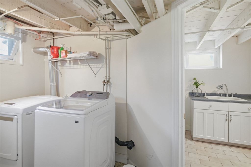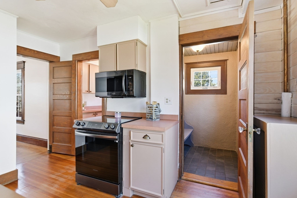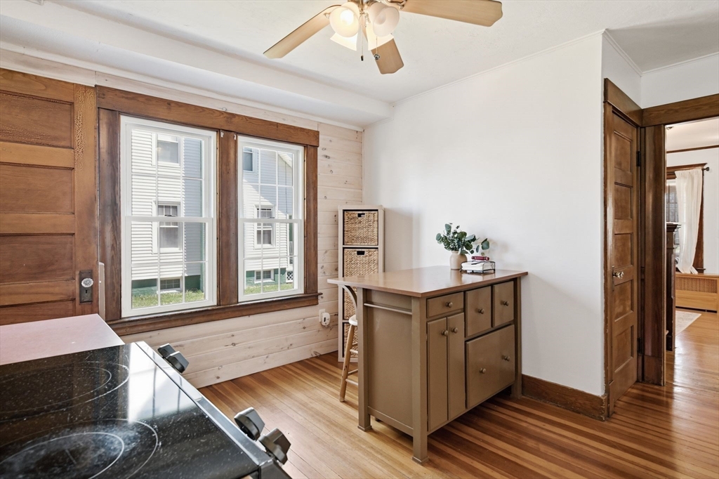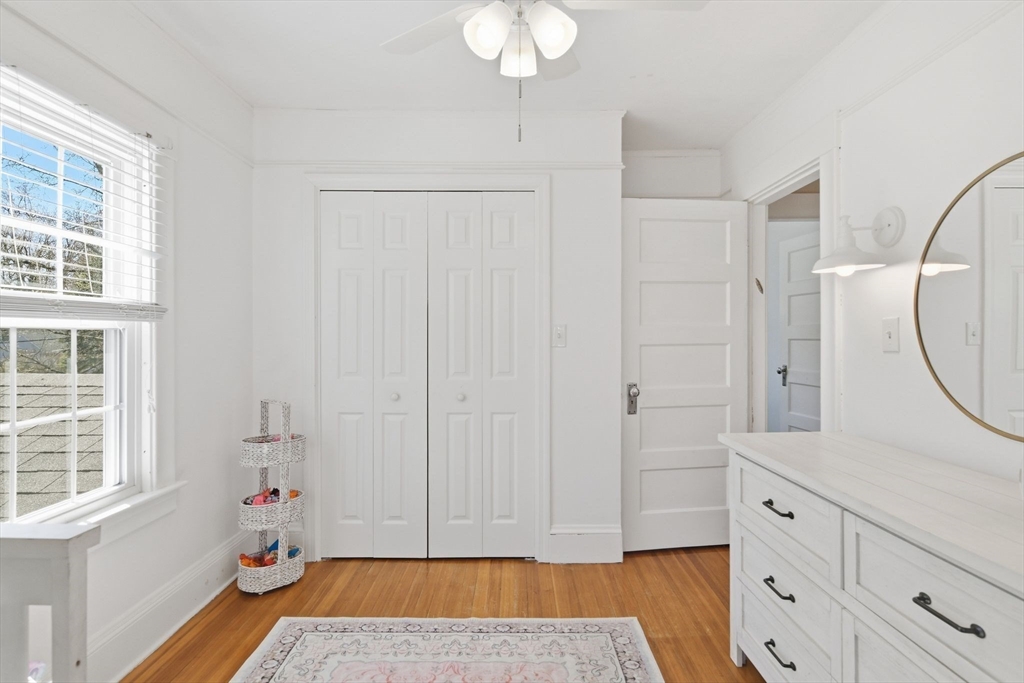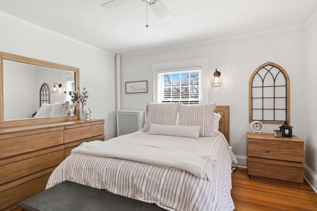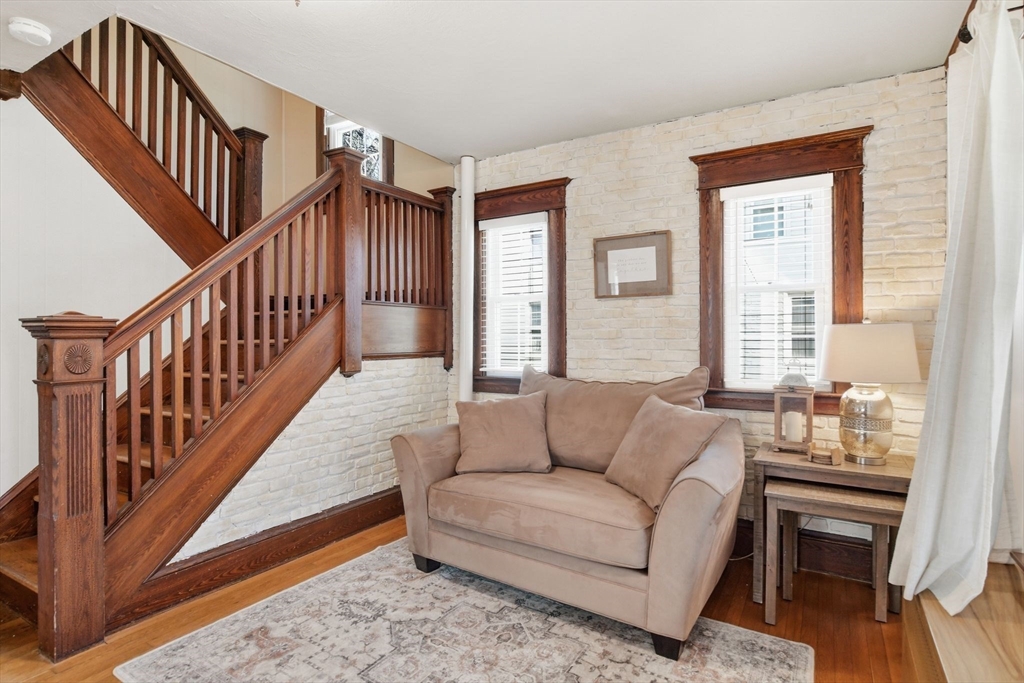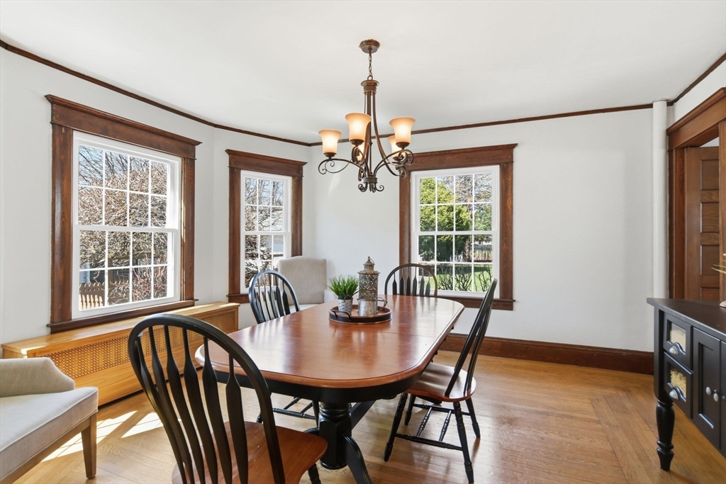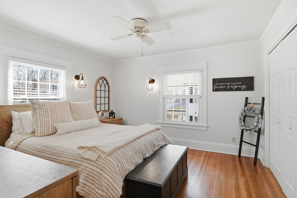 Classic colonial combines timeless charm w/solid structure & generous footprint, perfect for buyers ready to personalize their dream home. Spacious layout features wood floors throughout & beautiful millwork, offering endless opportunities to enhance home's character. Main level boasts tall ceilings, fantastic sight lines & circular flow. Enjoy relaxing in charming & welcoming front porch w/three walls of windows. Living room w/beautiful turned staircase opens to dining room showcasing large bay window & adjacent well-placed kitchen. Step outside through the convenient mudroom area to stamped concrete patio & well-landscaped fenced backyard. Upstairs, 3 bedrooms w/wood floors, ceiling fans & double closets share a tiled full bath. Walk-up third floor provides another bedroom or bonus space. Lower level features a nicely finished family room w/custom built-ins plus laundry & half bath. Major updates, including newer roof, replacement windows & mechanicals ensure comfort & durability.