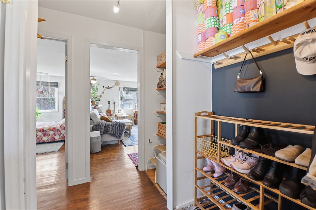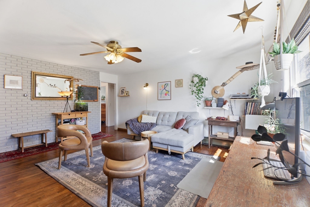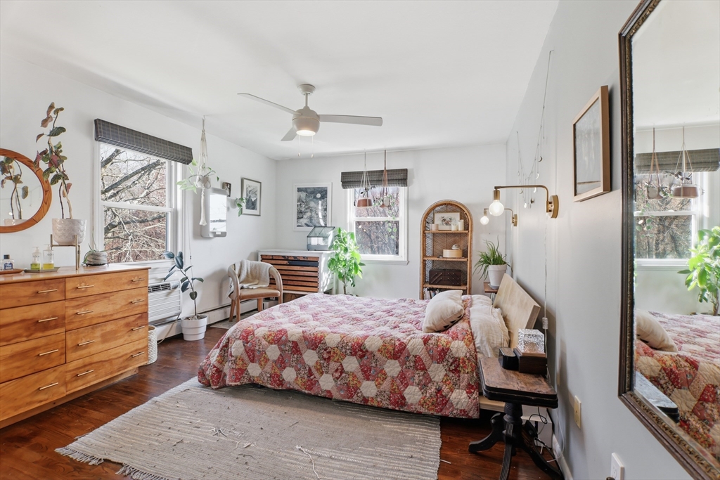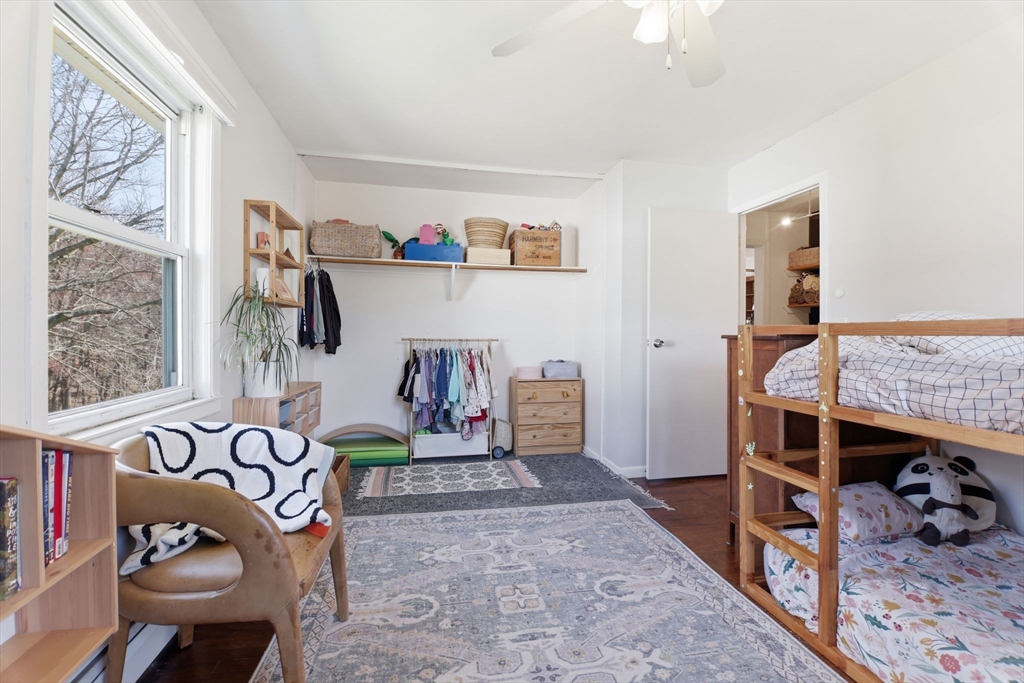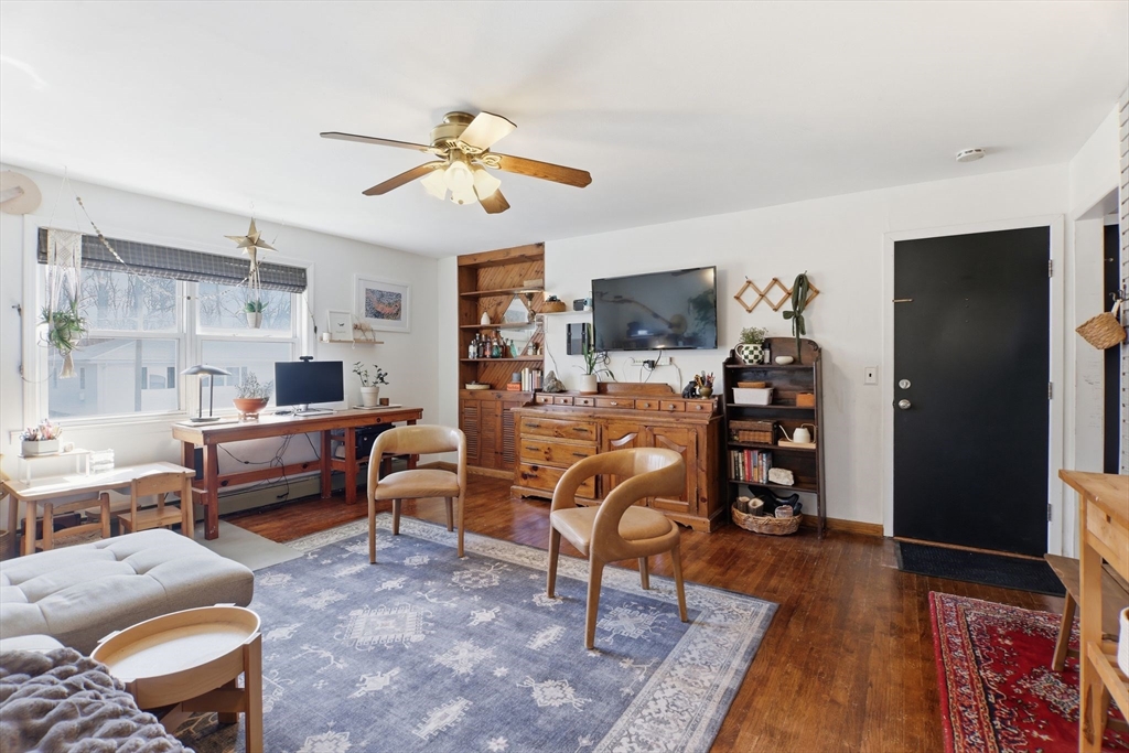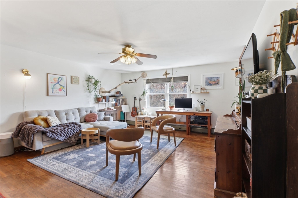 Don't miss this opportunity! Charming second-floor, two bedroom garden style unit condo located in a highly desirable community. The affordable condo fee includes heat and hot water, offering exceptional value and savings. Step inside and you'll immediately notice the bright and spacious living room featuring beautiful wood floors, creating a warm and inviting space perfect for everyday living or entertaining. The layout flows seamlessly into the eat in kitchen with ample cabinetry. This unit offers two generously sized bedrooms, including a spacious primary bedroom, both bedrooms feature hardwood floors and large double closets, providing plenty of storage. Enjoy outdoor living with access to a cozy patio area, a gazebo nearby, and an on-site in-ground swimming pool. Some additional features include, assigned parking, assigned secure storage and onsite laundry. Very affordable, comfortable living in a well maintained community ready for its next owner!