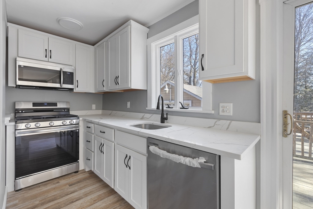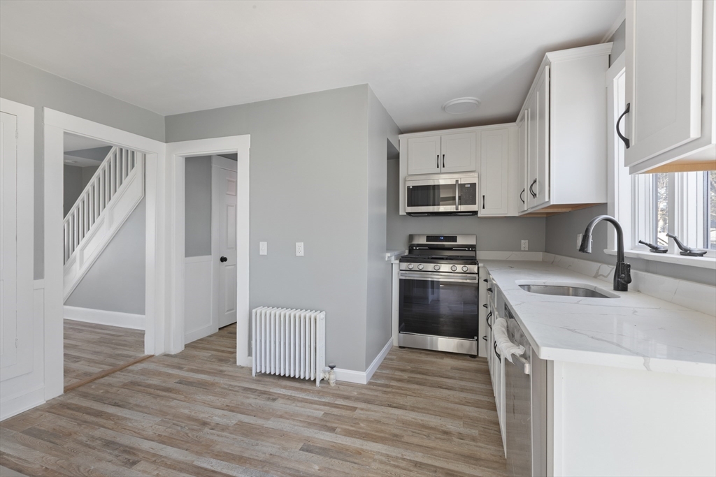 Stunning, fully renovated home featuring a brand new kitchen with stainless steel appliances and quartz countertops. New waterproof flooring throughout. All mechanicals, electrical, and plumbing systems were renovated in 2026. Energy-efficient LED lighting throughout. Updated heating system and electrical panel. 3 bedrooms upstairs, 1 on the main level, plus formal dining and living rooms. New full and half bathrooms. Detached 1-car garage and large back deck. Above-ground pool (condition unknown). Corner lot location. Move-in ready!