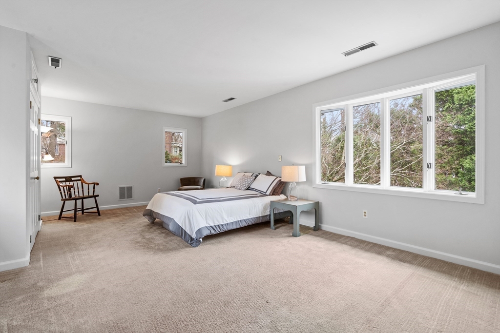 Handsome hip-roof Center Entry Colonial in the heart of Lexington Center. The grand piano sized front-to-back living room with fireplace is ideal for entertaining or relaxing. Bright sunroom or office offers deck access overlooking a private yard with a serene pond. The kitchen provides a charming dining area with deck access and opens to a large family room with gas fireplace, built-ins, and workspace. Upstairs are three corner bedrooms and a light-filled primary suite. Features include high ceilings, detailed moldings, maple floors, and custom built-ins. Enjoy an unbeatable location near the Minuteman Bikeway, Lexington Green, Cary Memorial Library, Hayden Recreation, shops, restaurants, Cary Hall, Lexington High School, and a variety public transportation choices.