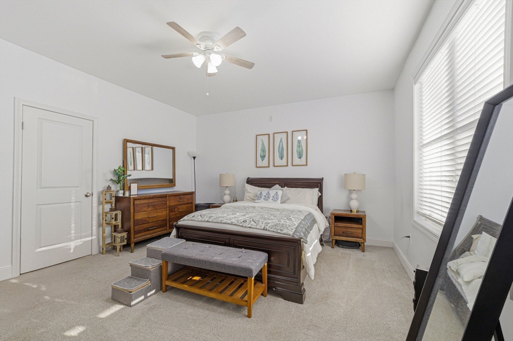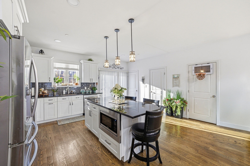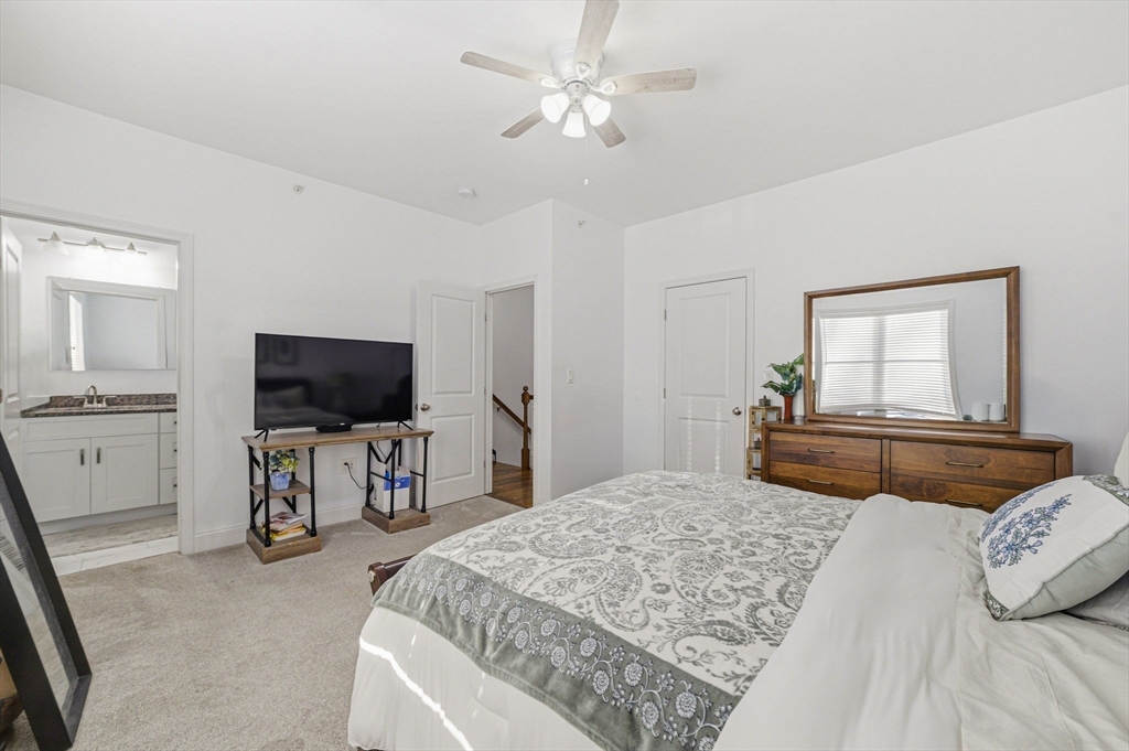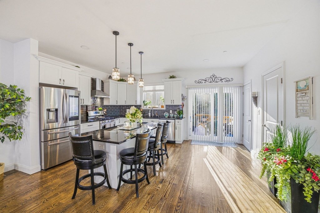 Welcome to this beautifully maintained 2021-built townhouse at 680 Temple St, Unit C4 in Whitman. This spacious three-level condominium offers a modern open floor plan designed for comfortable living and entertaining. The main level features hardwood flooring, an inviting living room a bright dining area. The stylish kitchen offers shaker cabinetry, granite countertops, a tile backsplash, stainless appliances, and a large center island ideal for meal prep and casual dining. Step out to a private deck perfect for relaxing outdoors. The upper level features two spacious primary bedroom suites, each with its own full bath and generous closet space, along with convenient second-floor laundry. Additional highlights include central air and gas heat with two zones, two deeded parking spaces plus guest parking, and an unfinished basement providing excellent storage or future finishing potential. Conveniently located near major routes, shopping, restaurants, and the commuter rail.