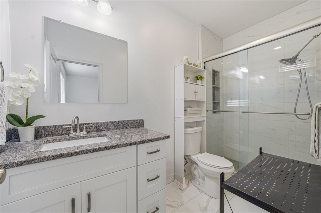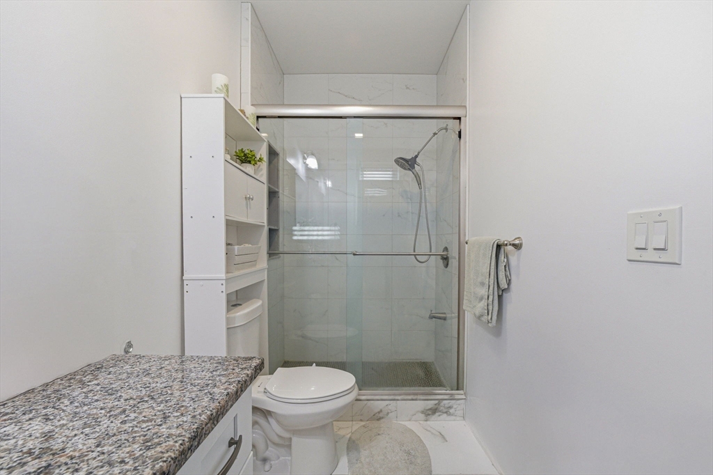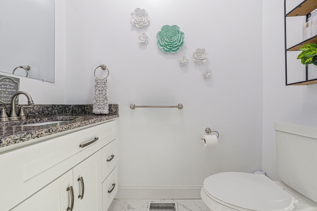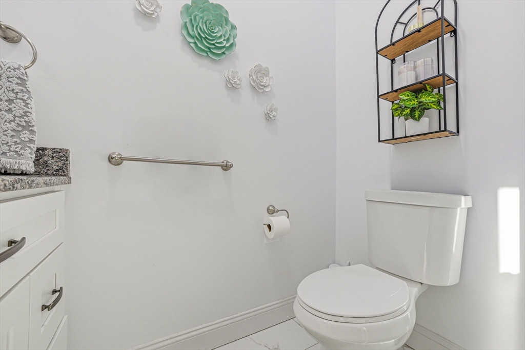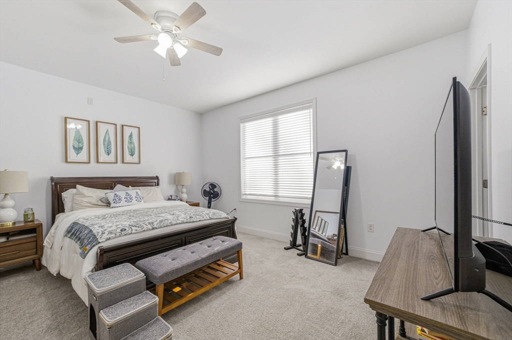 Welcome to this beautifully maintained 2021-built townhouse at 680 Temple St, Unit C4 in Whitman. This spacious three-level condominium offers a modern open floor plan designed for comfortable living and entertaining. The main level features hardwood flooring, an inviting living room a bright dining area. The stylish kitchen offers shaker cabinetry, granite countertops, a tile backsplash, stainless appliances, and a large center island ideal for meal prep and casual dining. Step out to a private deck perfect for relaxing outdoors. The upper level features two spacious primary bedroom suites, each with its own full bath and generous closet space, along with convenient second-floor laundry. Additional highlights include central air and gas heat with two zones, two deeded parking spaces plus guest parking, and an unfinished basement providing excellent storage or future finishing potential. Conveniently located near major routes, shopping, restaurants, and the commuter rail.
