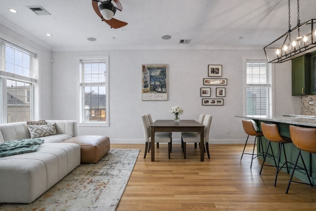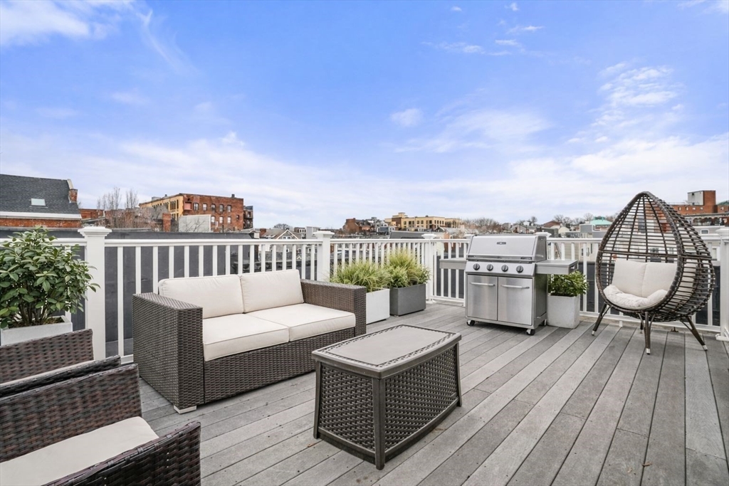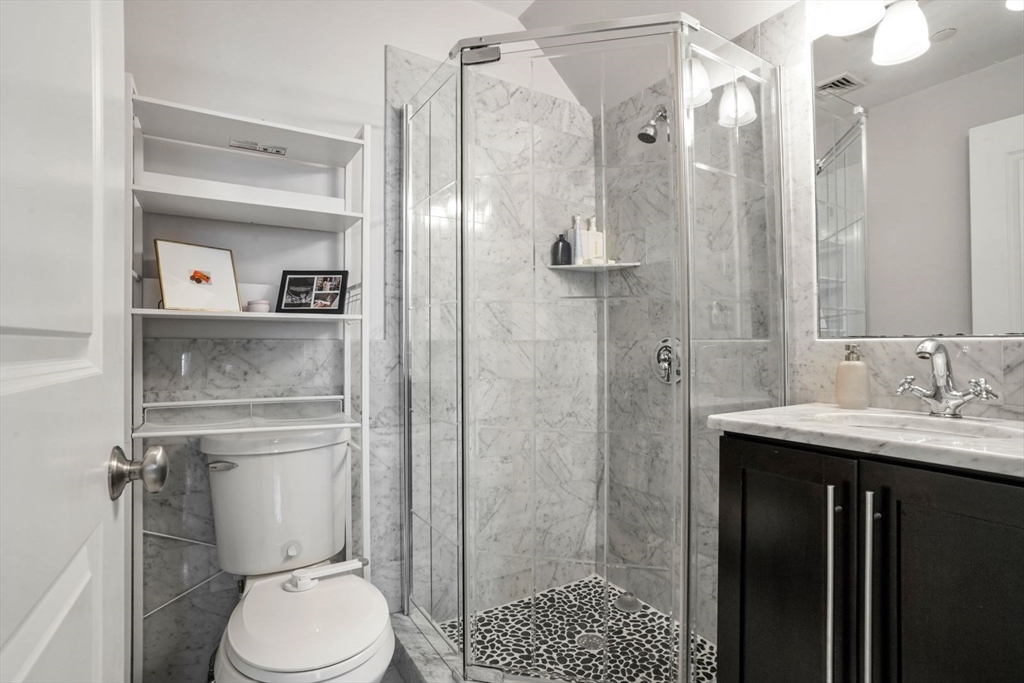 Move-in-ready, 3 bed, 2 bath penthouse duplex in prime location of Southie's West Side with private roof deck, garage parking, and storage unit. This corner unit has an abundance of natural light, and an open concept floor plan for spacious living. The fully renovated kitchen features stainless steel appliances, an oversized island, pantry and plenty of storage! The kitchen overlooks the large living room with gas fireplace and built ins. Primary suite has 3 large closets, private bathroom, and ample room for a king bed. Unit also has 2 additional bedrooms, and another full common bathroom. The top floor bedroom would be perfect as an office. It features a second gas fireplace, large sliding doors, and easy access to the private roof deck. Built in 2009, this property also includes 1 garage parking space, a storage unit, central air, and laundry in unit. This unit has it all and is not to be missed! First Open Houses Sat/Sun April 11th and 12th, from 11am-12pm.