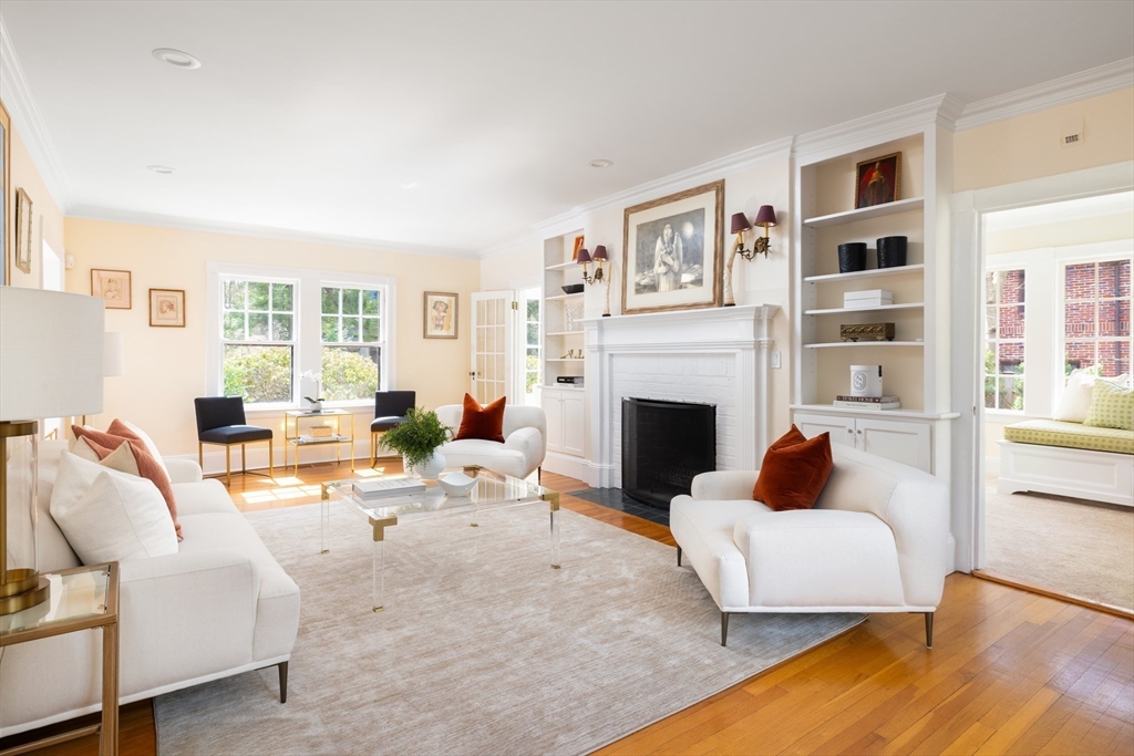 Elegant brick center-entrance Colonial on a desirable tree-lined street, offering 10 rooms, 4–5 bedrooms, and 4.5 baths. Front-to-back living room with fireplace and great natural light, formal dining room, and eat-in kitchen open to a large family room. First-floor study/office. Central air. Two-car garage plus additional storage garage that accommodates a small car . The lower level includes a family room, workout room, and laundry. Located in the Heath School district, this home offers a private, quiet setting just minutes to schools, parks, shopping, and all that Brookline and Boston have to offer.