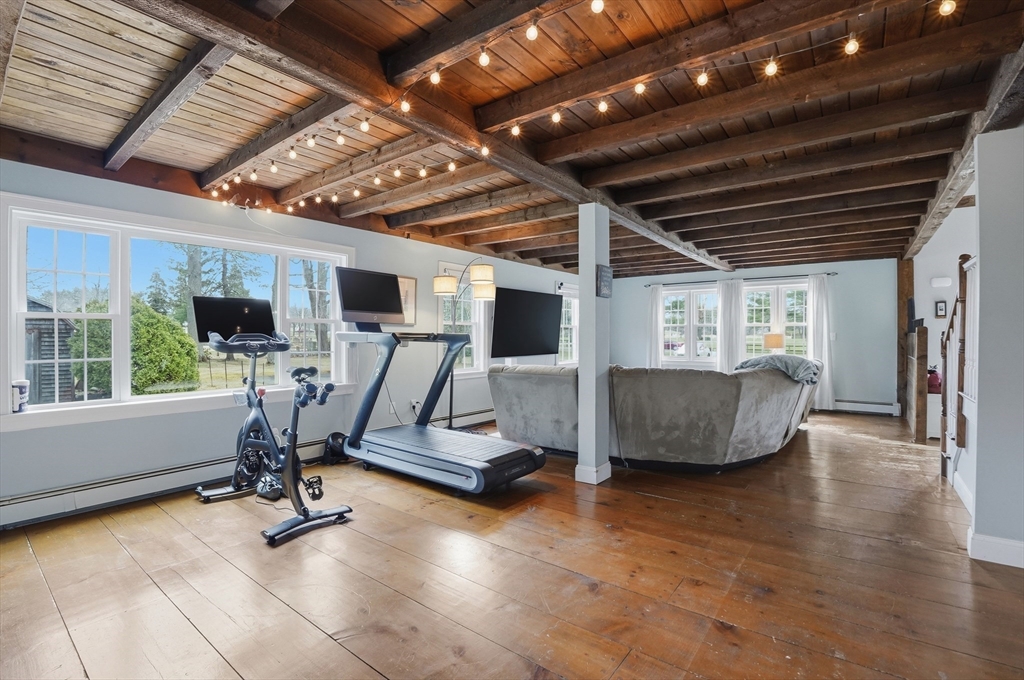 Welcome to 61 Main St, where modern updates meet timeless charm. This colonial features beautiful original details, including (original) copper chandelier & wood beamed ceilings that add warmth & character throughout. Enter into the spacious foyer open to the second floor, leading into a large living room with a brick fireplace, perfect for relaxing. The kitchen offers propane gas cooking & a convenient laundry hookup. The primary suite features two closets, a soaking tub, & private stairs leading directly into the living room. Three additional bedrooms complete the second floor, & a large basement provides abundant storage. The home also benefits from a True Health water filtration system. Outside, enjoy the three-season porch, new patio with hot tub (2021), fully fenced yard, veggie garden & great assortment of fruit trees. Across the way enjoy a local horse show at the Briggs farm. Recent improvements: updated plumbing, added insulation, all new windows, roof, driveway & siding