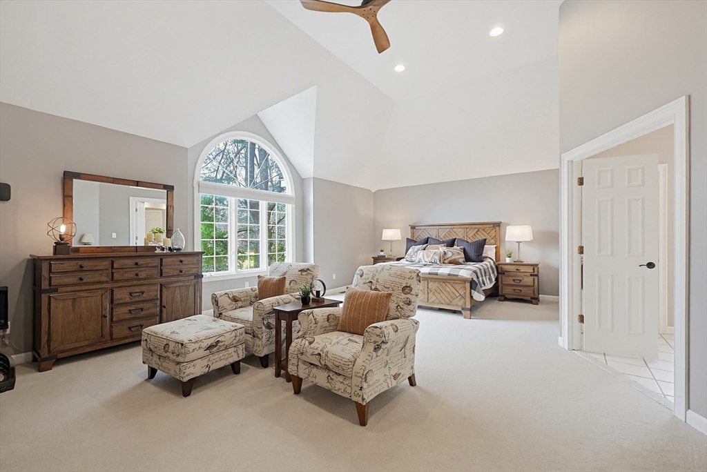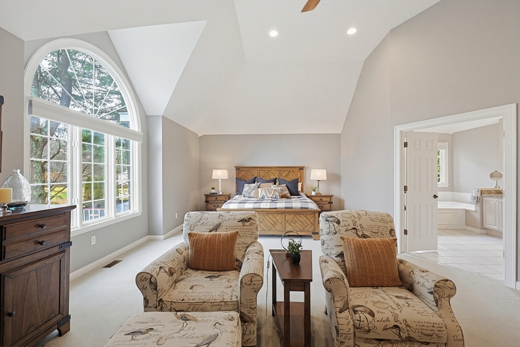 Set within the highly sought-after Acorn Park neighborhood, this is one of those homes that truly stands out. With a versatile and thoughtfully designed floor plan, it’s easy to fall in love. The main living area is open and inviting, with the kitchen flowing seamlessly into the family room beneath soaring vaulted ceilings; perfect for both everyday living and entertaining. Sliders lead to the deck and private backyard with space for yard games, making indoor-outdoor living effortless. Upstairs, the primary suite is privately set in its own wing, featuring a striking Palladian window, vaulted ceilings, and a spacious bath with jetted tub and separate tiled shower. Three additional bedrooms and a renovated full bath complete the upper level. The walkout lower level offers a media area, game room, and private guest suite or office with an updated 3/4 bath. A 2-car garage with EV charging adds convenience. Enjoy direct access to conservation trails and Quail Ridge Golf, Tennis & Pool Club