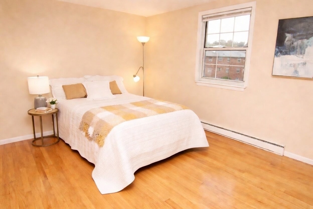 Bright top-floor condominium with a private south-facing courtyard view. This unit is in a perfect location and includes heat, water and hot water. It features many recent updates, including a new stainless-steel dishwasher plus other kitchen and bathroom improvements. Hardwood floors throughout, recessed lighting, and an abundance of natural light make the space bright and inviting. Residents enjoy a large, well-maintained pool and picnic area. The complex sits directly adjacent to the Minuteman Commuter Bike Path, which leads straight to Alewife subway station. Just two blocks away you’ll find buses to Alewife or Harvard, Trader Joe’s, Starbucks, Arlington Heights shops and restaurants, and Reservoir Beach. Deeded parking space #92. When the property was converted to condominiums, this was one of the first units to sell — for good reason. Come have a look!