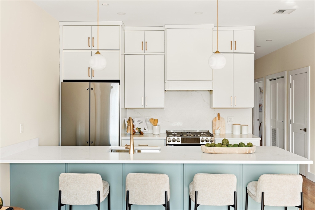 Welcome to 12 Geneva Street, Unit 3 — a stunning new-construction condominium in the heart of Jeffries Point, one of East Boston’s most desirable neighborhoods. Just blocks from the waterfront, parks, and acclaimed restaurants, this home blends modern design with everyday convenience. This spacious 3-bedroom, 2.5-bath residence features hardwood floors, recessed lighting, and central heating and cooling throughout. The open-concept living area is ideal for entertaining and showcases a chef-inspired kitchen with double-stacked cabinetry for exceptional storage, an oversized island, and a fully vented gas range. Porcelanosa tile selections elevate each bathroom with a refined, designer finish. Thoughtfully built with quality craftsmanship, this home delivers contemporary comfort in one of East Boston’s most sought-after neighborhoods.
