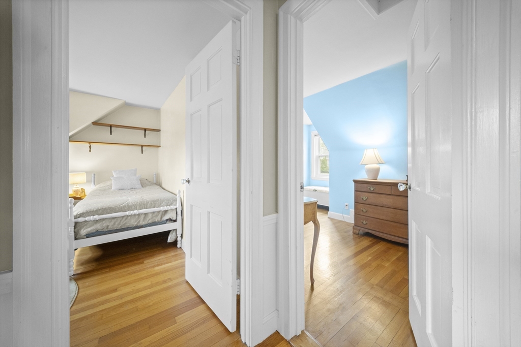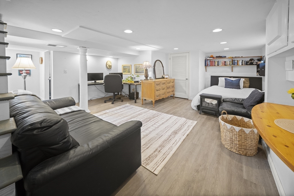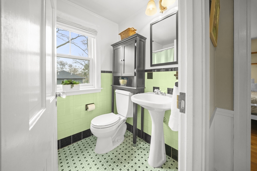 Colonial-Influenced Home in Newton Center: This spacious residence boasts 4 beds, 2 full baths, with a main floor primary bed featuring an en suite bath. The updated kitchen, with granite countertops, flows into a bright formal dining room, leading to a massive back porch that expands your living space during warmer months. The traditional layout includes a formal sitting room w/ fireplace. The owners have expanded the home, creating a huge family room over the 1-car garage & a generous driveway. The finished lower level offers abundant light, a walk-out door to a lush, manicured private backyard, & versatile space perfect for an office, gym, or playroom. Central A/C & numerous updates make this property a true gem. Ideally located on a quiet corner lot, close to Newton South, Brown & Countryside public schools, with accessible public transportation, including the Green Line, making commuting a breeze. This charming home combines style, comfort, & convenience- showings start at OH(s)!