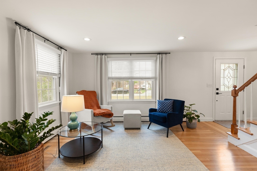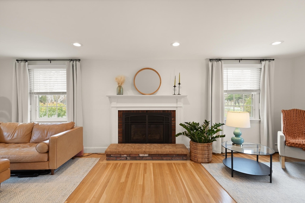 Charming Gambrel Cape set on a level .93 acre lot in one of Topsfield’s most desirable cul de sac neighborhoods. This warm and inviting home features all hardwood floors, a front to back living room with gas fireplace, a welcoming dining room and a kitchen that opens to a bright sunroom offering direct access to the deck for easy indoor/outdoor living. Upstairs are three bedrooms including a spacious primary with a walk in cedar closet. Highlights include central air, a newer furnace, updated electrical and an attached 2 car garage. The home also includes a full basement with a partially finished area providing flexible bonus space for work, play, or storage. The Topsfield community, set within the desirable Masconomet Regional School District, is known for its small town charm, strong community spirit, trails, Hoods Pond and close proximity to major highways. This lovely home offers a tranquil setting and generous outdoor space for everyday enjoyment. Come home to Topsfield!