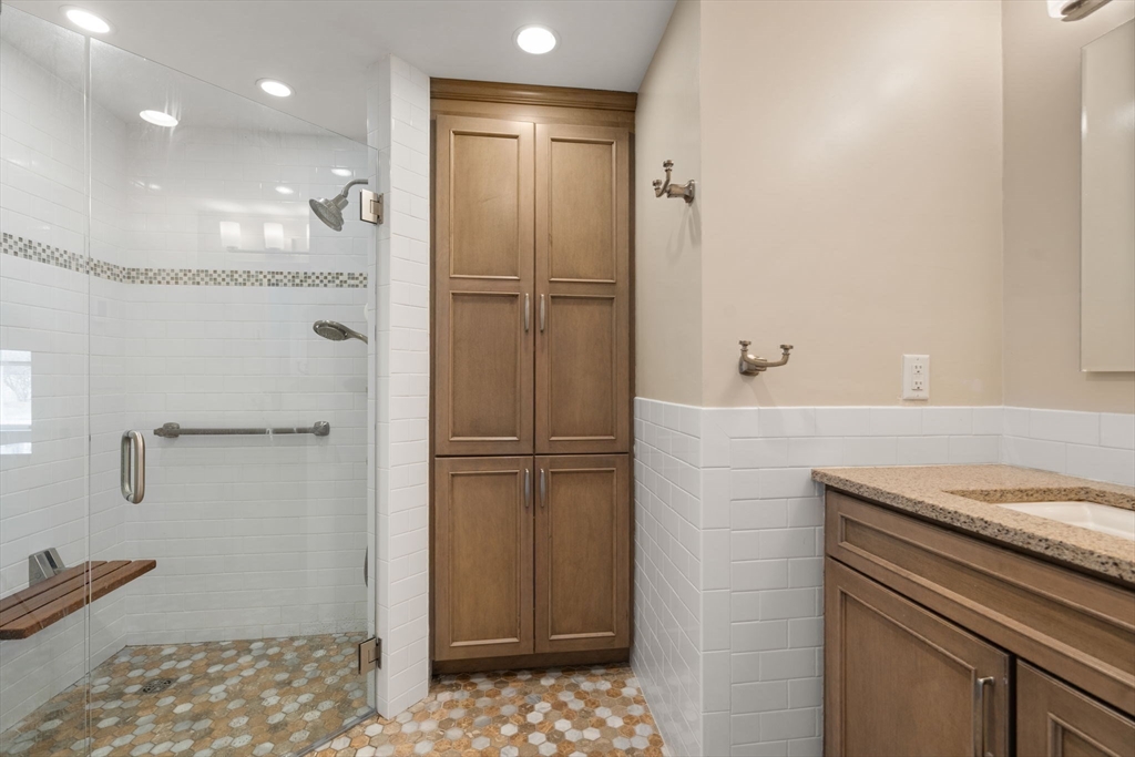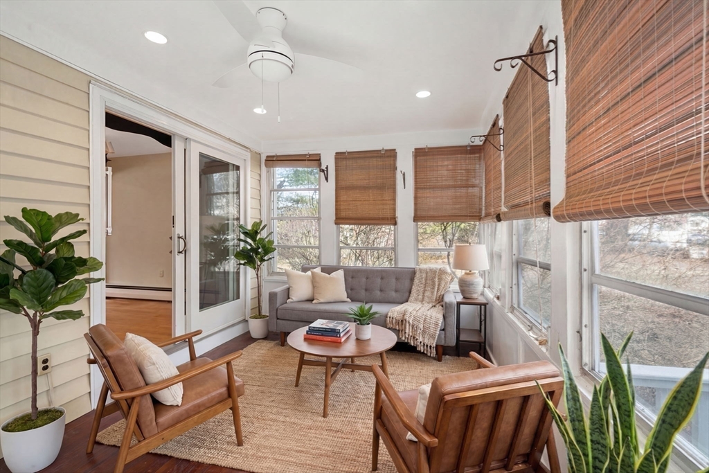 This home features one-level living with a private attached IN-LAW APARTMENT offering separate utilities, providing excellent flexibility. Ideal for multigenerational living, extended living space, or potential rental income, the layout is both functional and comfortable. The main house showcases 3 bedrooms with a tastefully updated kitchen and baths. Enjoy the outdoors from the inviting 3-season room which leads to a deck, perfect for relaxing or entertaining. The property also offers a level, irrigated yard, ideal for easy outdoor living and low-maintenance enjoyment. The lower level includes a bonus room and an additional bathroom, ideal for a home office, gym, or guest space. Additional improvements include a brand new combo boiler and hot water heater in the main house. A two car garage is complemented with an oversized driveway, Conveniently located in a highly desirable area of Burlington, close to shops, restaurants, and major routes, w/ excellent commuter access and amenities