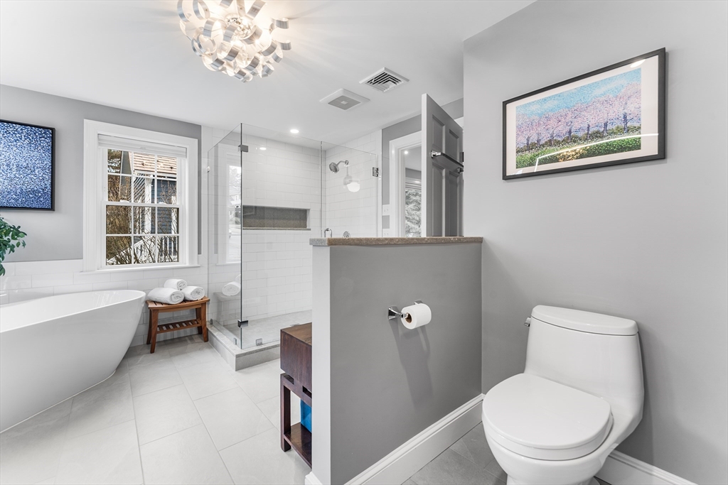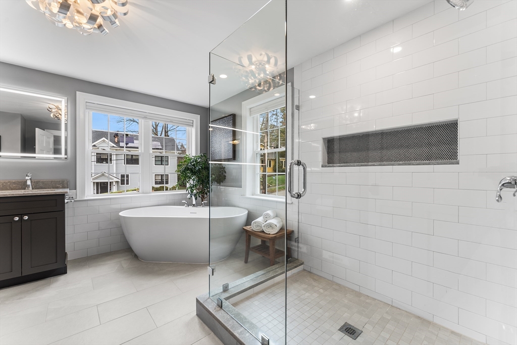 Welcome to this turnkey Needham home blending classic charm with modern updates. This oversized brick cape/colonial in Bird’s Hill is beautifully renovated and meticulously maintained, offering 5 bedrooms, an office, and flexible living spaces. The updated kitchen opens to a sun-filled family room with a gas fireplace, while formal dining and living room with a marble fireplace provide great entertaining areas. A first-floor office/bedroom and separate-entry in-law or guest suite with a full bath offer added flexibility. Upstairs features a spacious primary suite with walk-in closet and full bath, plus two bedrooms, a full bath, laundry and a sitting area. The finished lower level includes a half bath and space for a gym, office, or media room and another laundry room. $550K in upgrades include added living space, solar panels, and hardwood floors. Convenient to train, park, and schools.