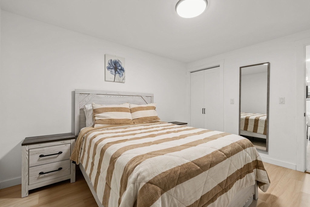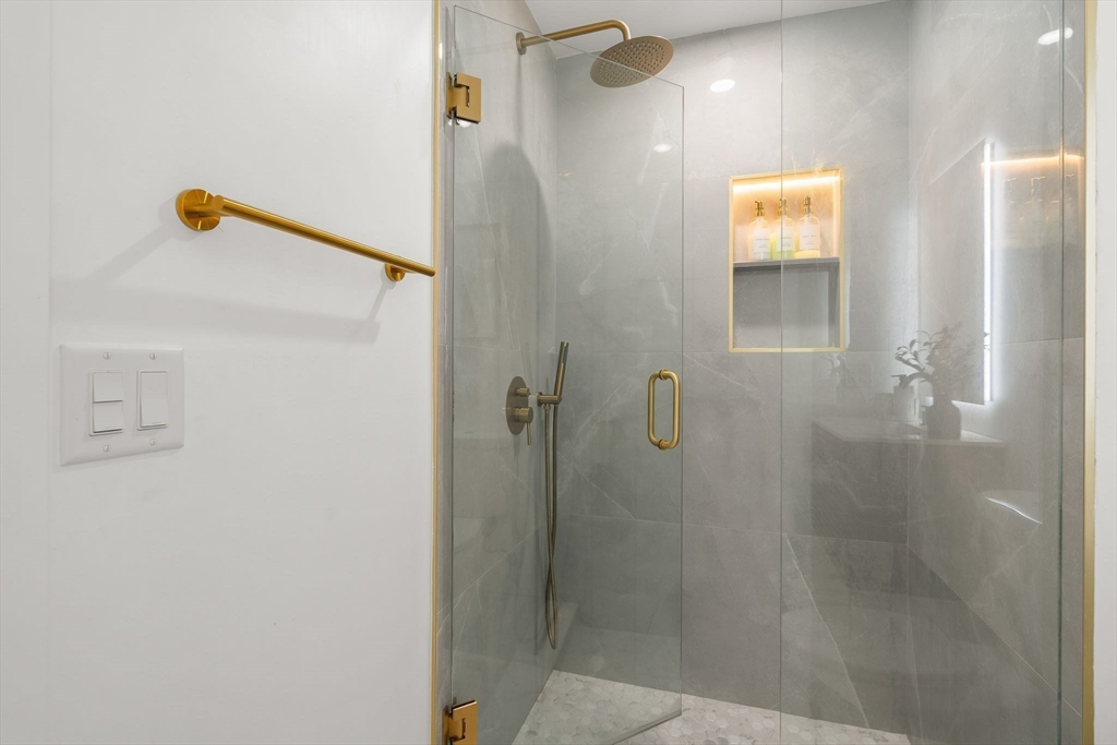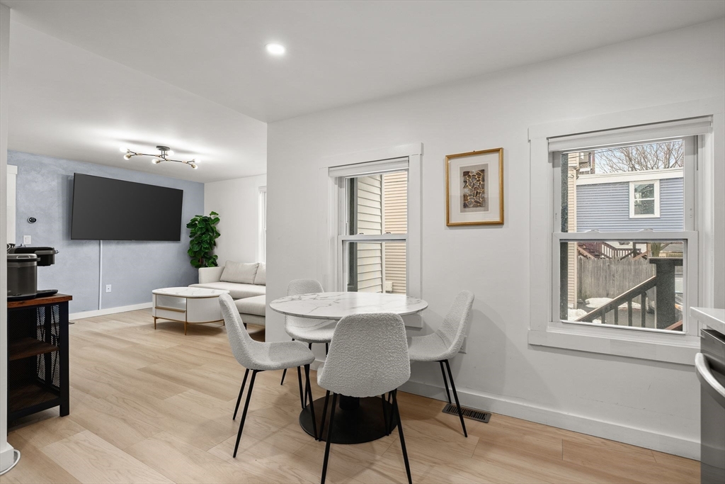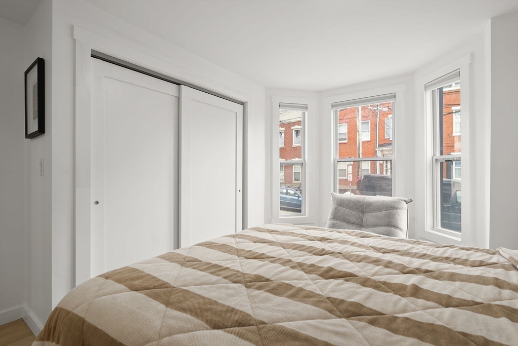 Available for rent starting 5/1, this beautifully renovated first floor unit sits on a private way in highly desirable East Boston. Unit 1 offers 2 spacious bedrooms and 2 full bathrooms, thoughtfully updated with modern finishes throughout including quartz counters, stainless appliances, engineered flooring and energy efficient systems. Kitchen is L shaped with green backsplash for whimsy! The bedrooms flank opposite ends of the unit, great for roommates or guests. The central living room has space for a dining area as well, and access to a side patio for grilling! Kitchen isRear bedroom features en suite bath with tiled shower, and W/D is located in hall. Additional highlights include lots of windows, Samsung appliances, sleek floating vanities, and electronic locks for added convenience. Located 1 block to the bus route for a 15 minute commute to downtown, blocks from sports fields, Condor Urban wild, and nestled int he heart of historic Eagle Hill!