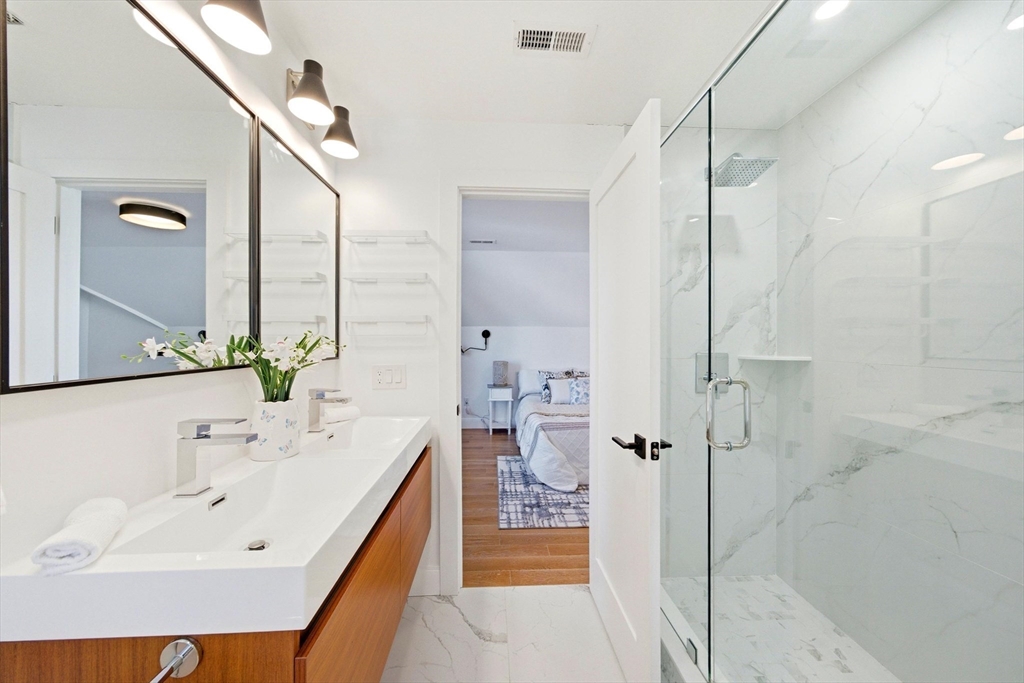 Welcome to 28 Cherry Street, a beautifully appointed townhouse nestled on a quiet, one-way, tree-lined street. It truely offers the space like a single family. This exceptional home offers 3 bedrooms, 2.5 baths, and a spacious home office, thoughtfully designed for modern living. The inviting fireplace adds warmth and comfort, while private outdoor space and multiple decks provide ideal settings for year-round enjoyment. Equipped with CAT-6 wiring and Ethernet, the home ensures enhanced connectivity and reliability. Additional smart home features include Nest thermostats, in-ceiling speakers, and a video doorbell. The property also includes two off-street parking spaces for added convenience. Enjoy close proximity to the Middlesex Fells Reservation, offering scenic trails and an off-leash dog area, as well as easy access to major routes and Downtown Boston. A rare opportunity to own a well-crafted home in a highly desirable location.
