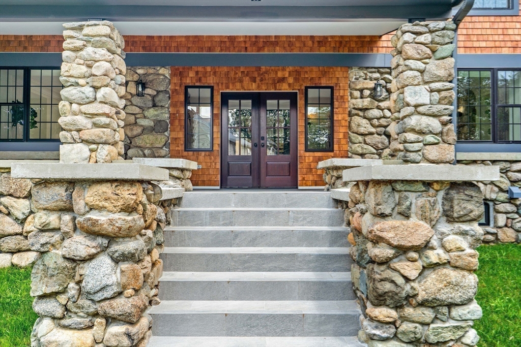 Set on a private 1.1-acre lot surrounded by mature trees, this reimagined 1880s stone farmhouse offers a lifestyle of luxury and elegance. Spanning 6,280 square feet, it seamlessly blends New England charm with Arts and Crafts detailing. The foyer’s dramatic floating spiral staircase sets the stage for a grand yet inviting atmosphere. The chef’s kitchen flows into a casual dining area and sunlit living room, where expansive glass doors open to the wraparound porch, merging the interior with nature. A stone fireplace anchors the formal dining room and sitting area, adding warmth and refinement. A private guest suite or office with its own entrance and deck completes the first floor. Upstairs, a large family room, reading nook, and lavish primary suite with a spa-like bath offer relaxation and comfort. Three additional ensuite bedrooms and a laundry room round out this exceptional home. Additionally, the finished lower level provides a versatile space, ideal for a home theater, gym...
