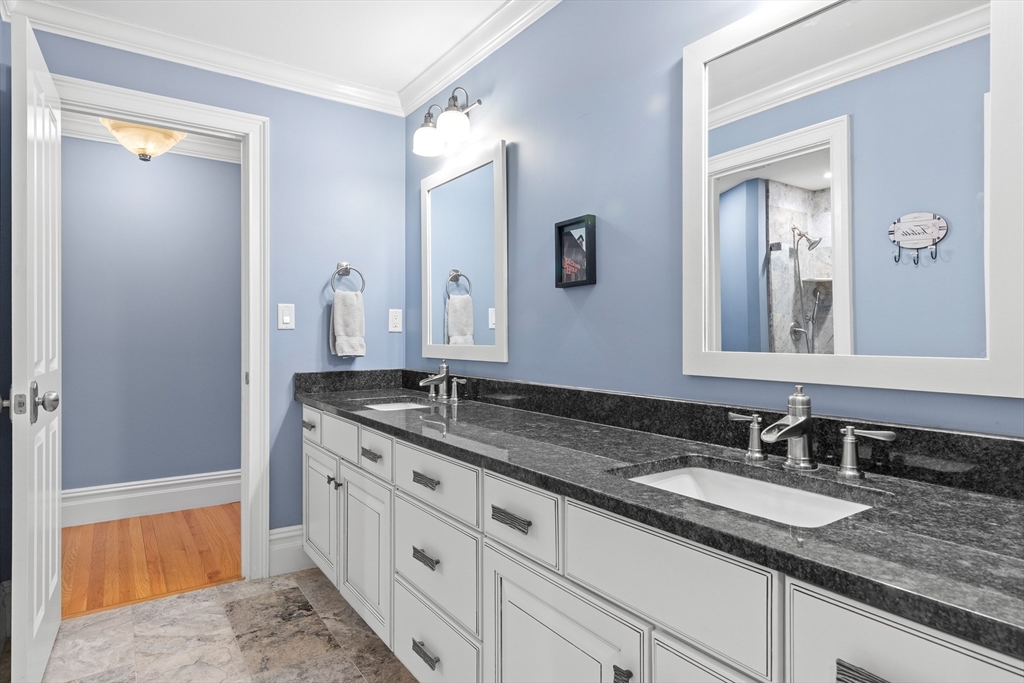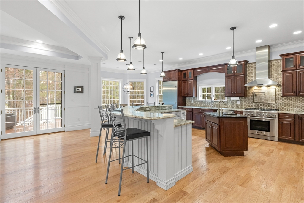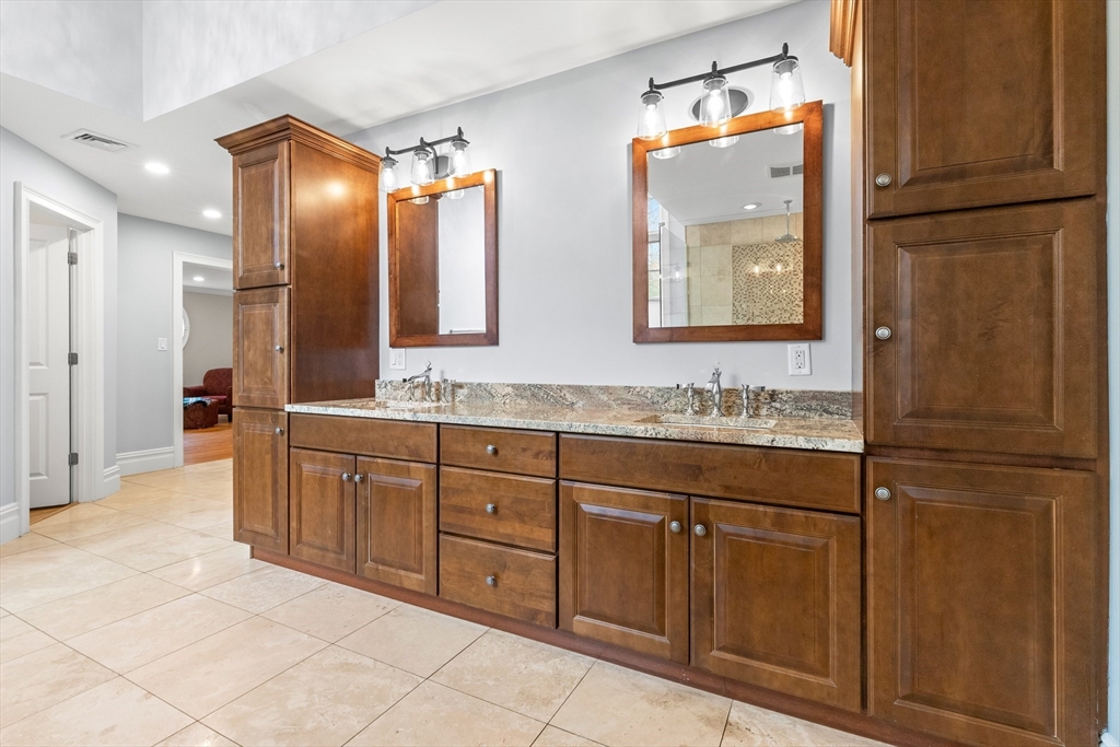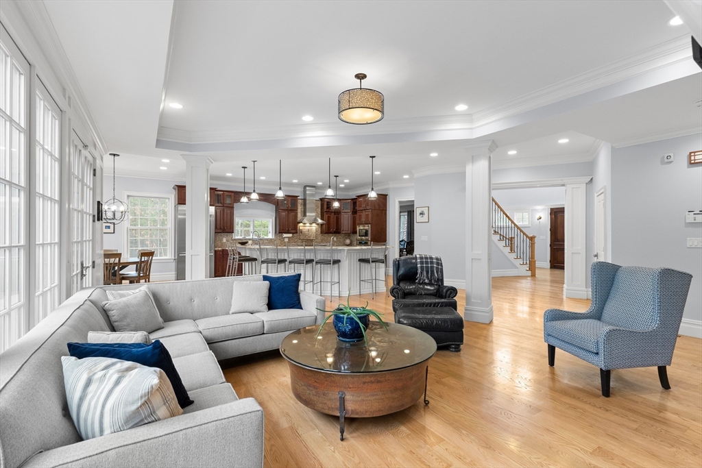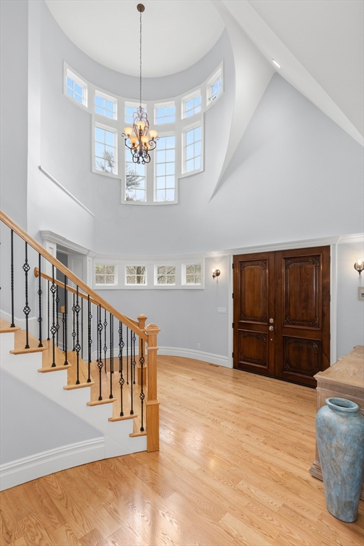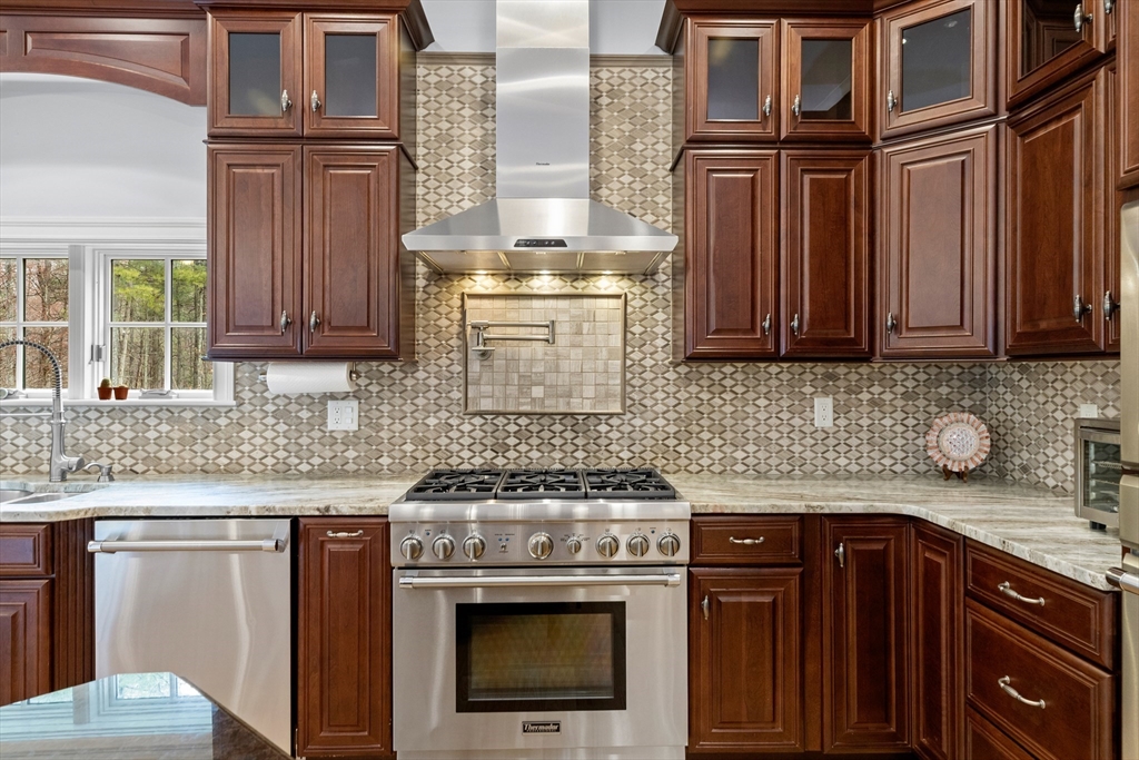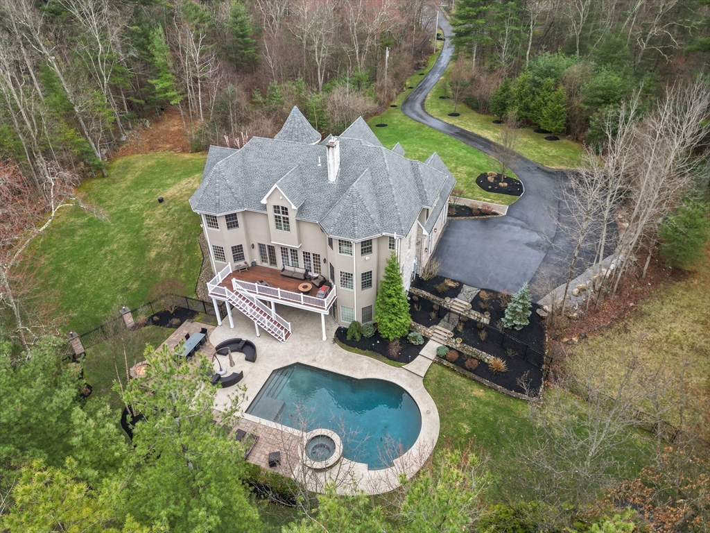 Exceptional, custom-built estate on 3+ acres of manicured grounds. This meticulous 5 bedroom stone home offers refined luxury for both relaxed living & elegant entertaining. The grand 2-story foyer w/ sweeping bridal staircase welcomes you into the first level w/ 10' ceilings. Imagine a dining room w/ seating for 20 guests! The chef's kitchen features an expansive island, 6-burner gas stove, wall oven & walk-in pantry. The family room w/ gas fireplace offers opportunities for cozy gatherings & easy access to the deck & spectacular in-ground pool. The large secluded living room w/ second staircase is perfect for billiards or musical instruments. Upstairs are 4 large bedrooms, including the primary suite w/ 3 walk-in closets & magnificent full bath, plus 2 additional full baths. The finished walk-out LL features a full bath, kitchenette, custom wine cellar, gym area, workshop & overhead door to the patio and pool. Finally, there's a heated 3 car garage + lift for the auto enthusiast.