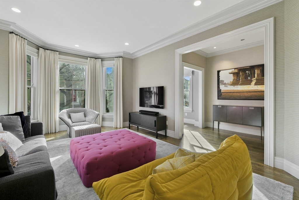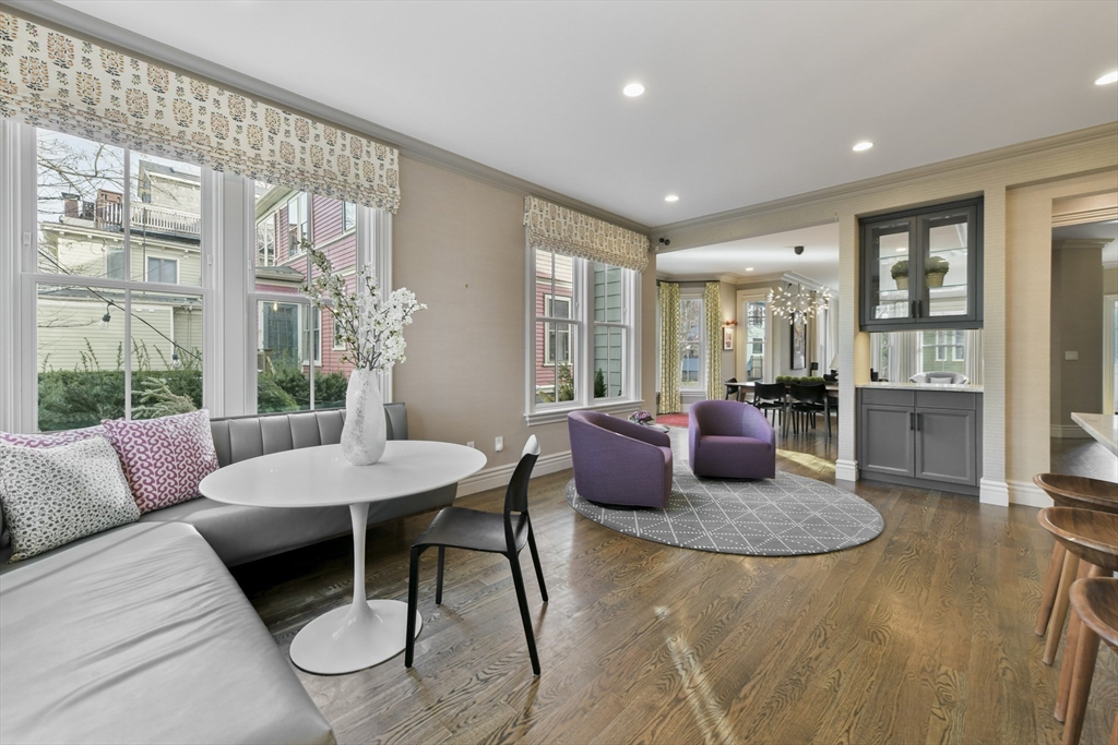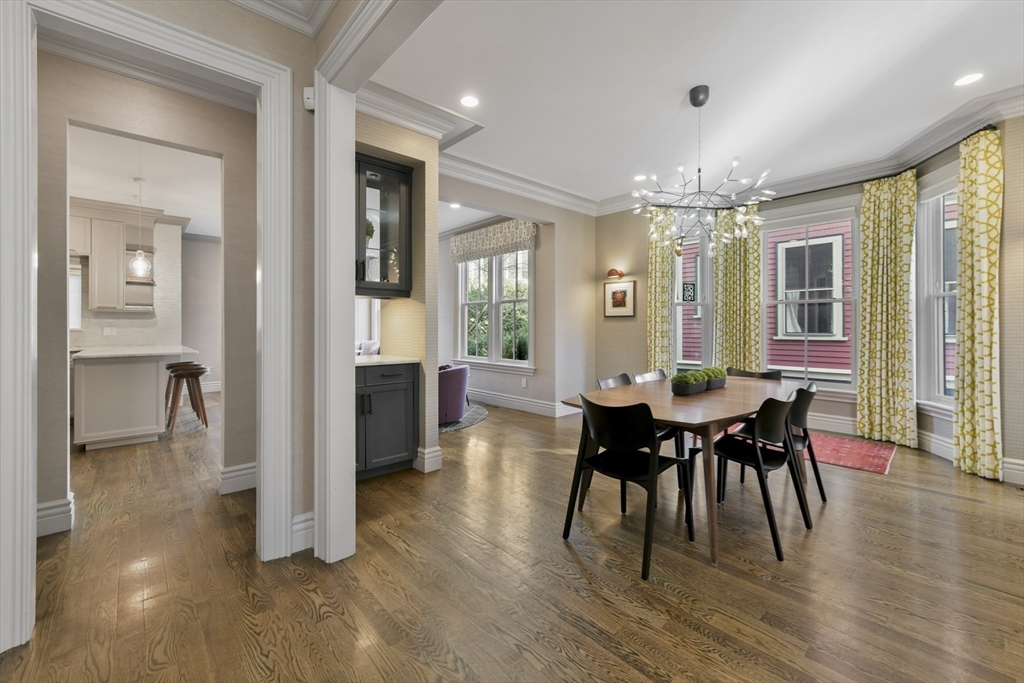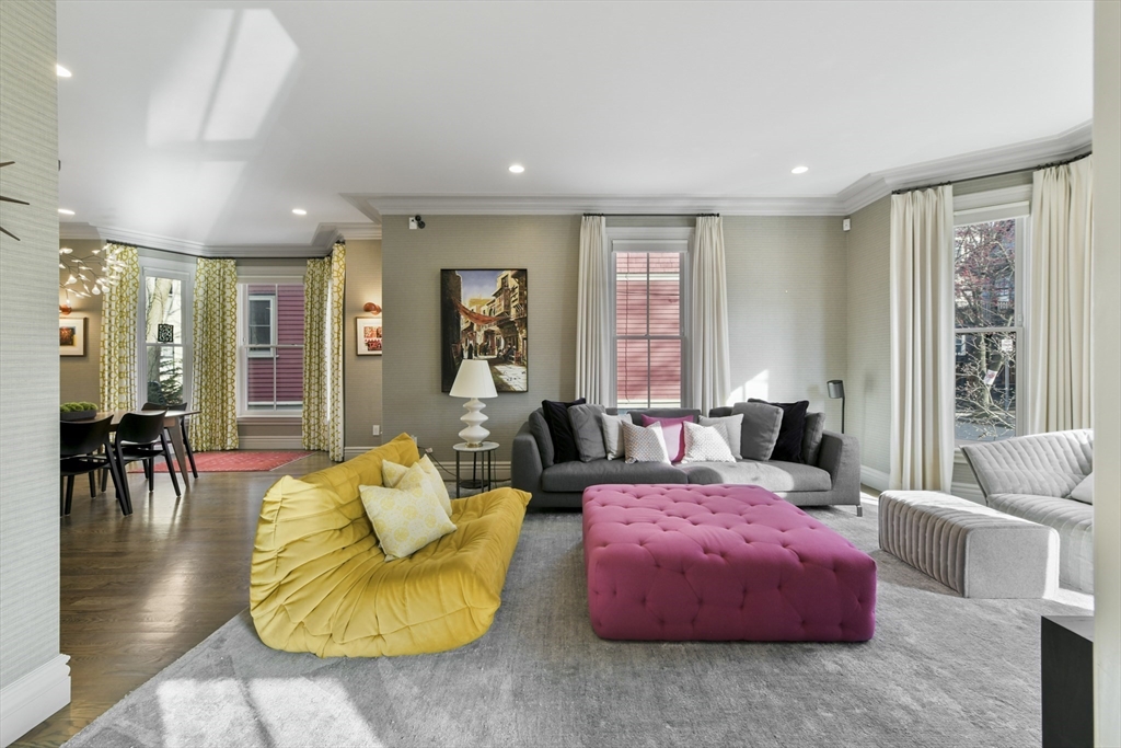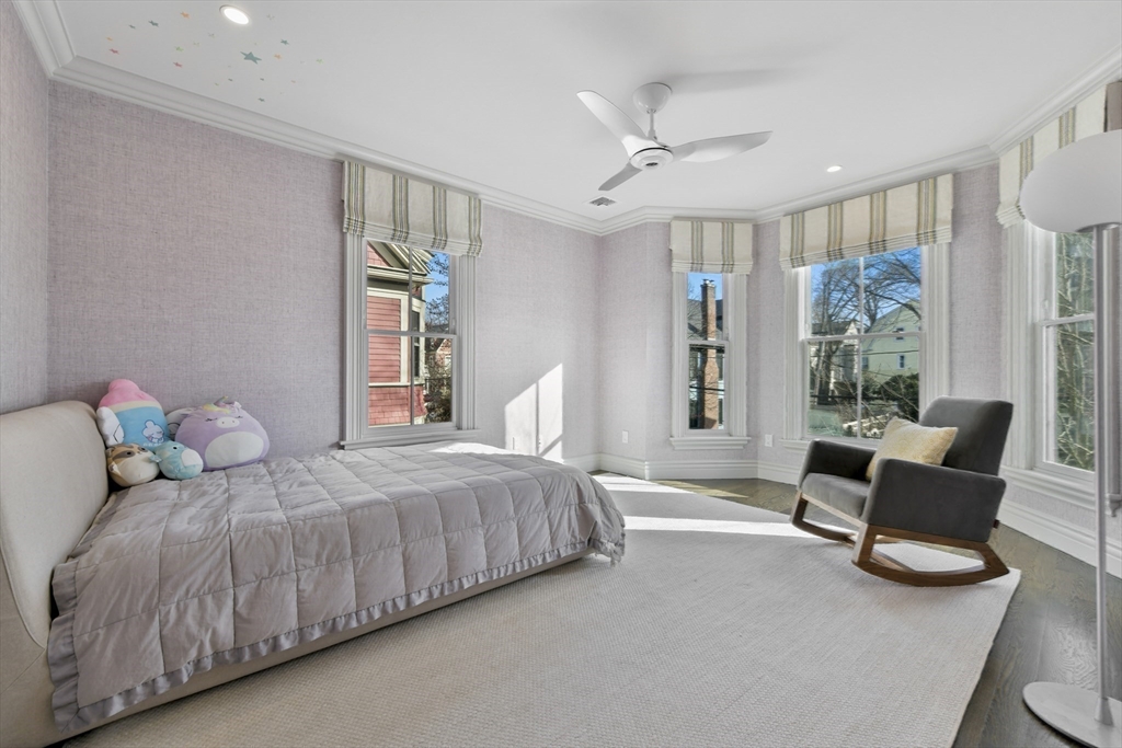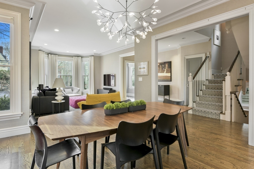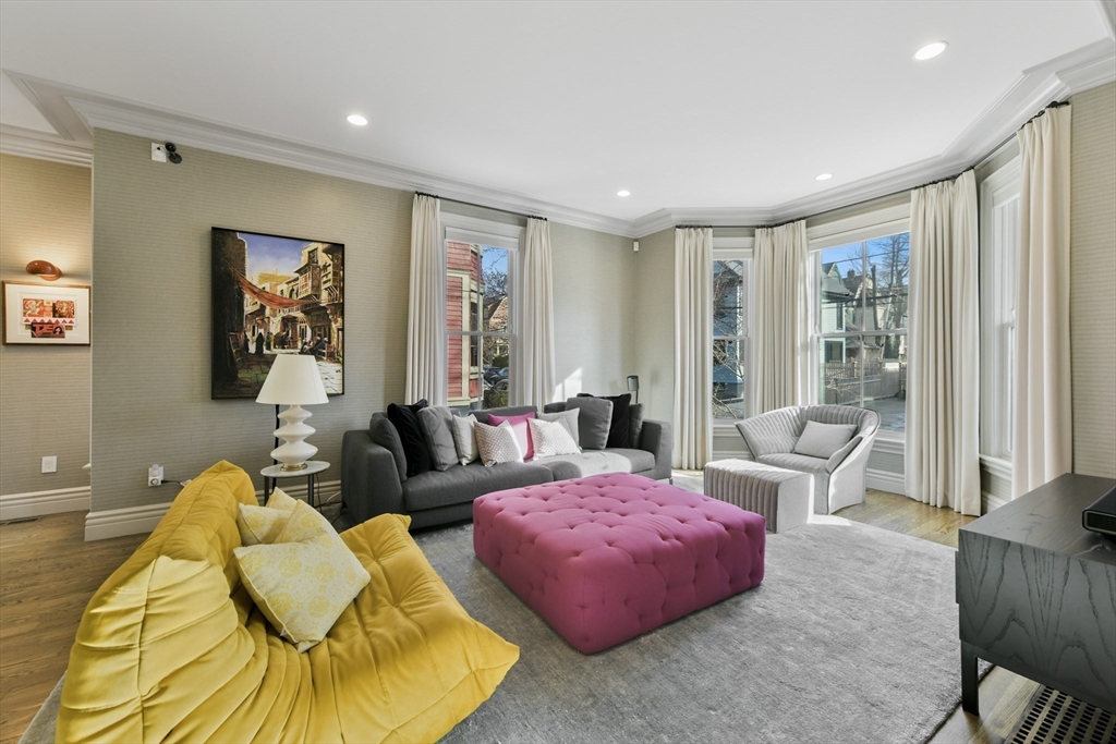 Step into this ideally located 1886 renovated Victorian in Mid-Cambridge. Redesigned by the acclaimed Elms Interior Design firm, this home seamlessly integrates classic elegance with contemporary luxury. Transformed in 2014 by Cafasso Design Group, the light-filled residence boasts high ceilings, elegant spaces, and superb craftsmanship. The generous floor plan (4,392 sf with 1,208 sf finished lower level) provides ample space for family life and entertaining, with bedrooms, studies, art spaces, music practice, recreation, and crafts areas. Four bedrooms, 4.5 baths, a sunny 3rd floor office, and bonus space in the finished walk-out lower level offer comfort and utility. The fenced yard with a bluestone patio and a 3rd floor roof deck provide space for play and relaxation. With a driveway for 2 cars, this single-family home offers quick access to MIT/Kendall Sq, Harvard University, restaurants, cafes, and playgrounds. Welcome to luxury living at its finest.