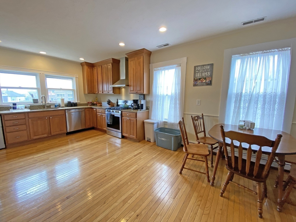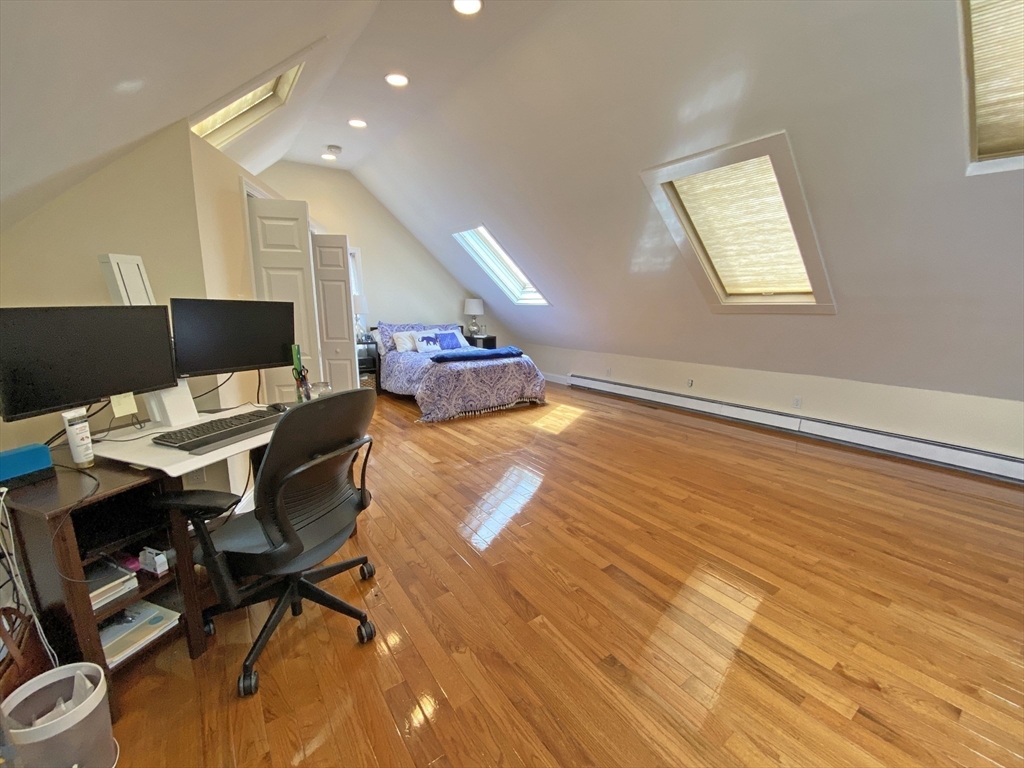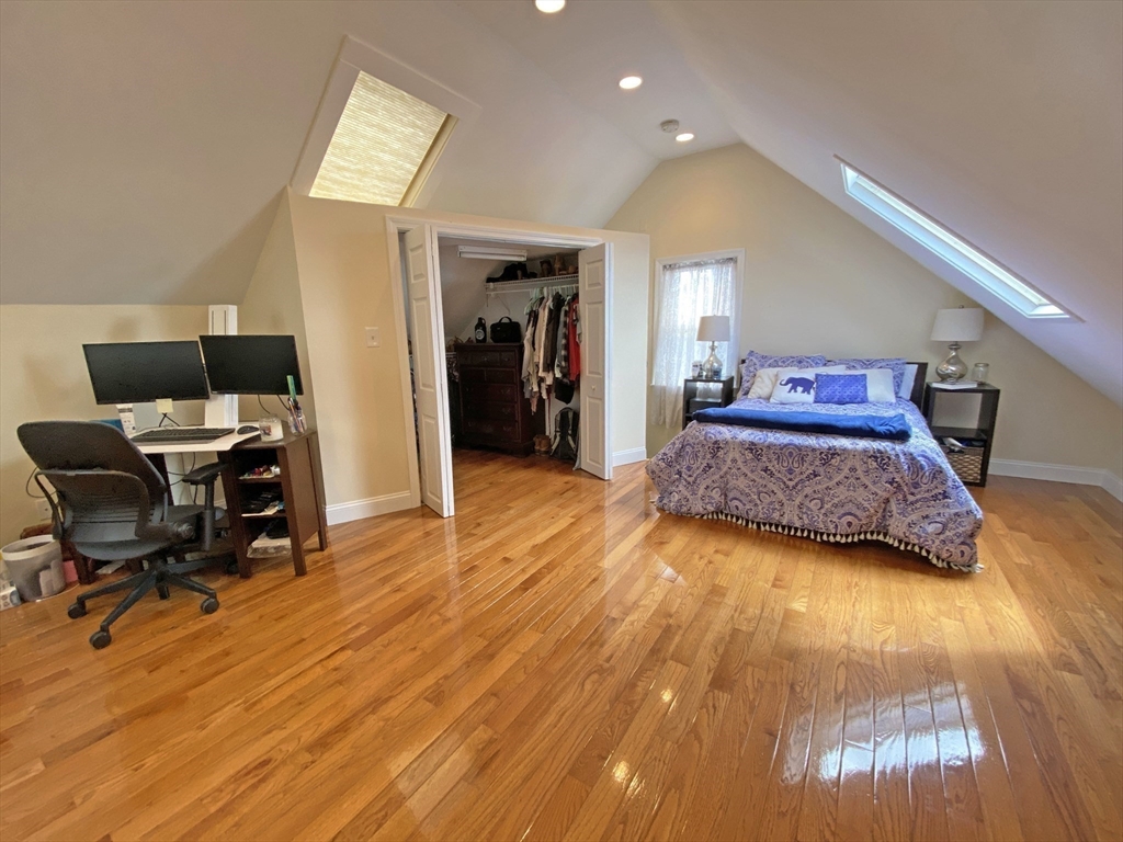 You'll love this beautifully renovated & HUGE (2015sf) *9 Room, 4BR, 2BA* condo on the top 2 floors of a 2 family. Wonderful granite, cherry & SS kitchen combines with a bright & 30 foot DR & LR area & entertaining space. French doors lead to the 4th BR, the 3rd BR on this level. Large 3rd fl suite w/ vaulted ceilings, 6 skylights & en suite bath w/ Jacuzzi tub, granite & frameless glass shower. Private laundry area off kitchen. You'll love the new roof, new high efficiency heat, cent A/C & sparkling oak floors. Easy pkg for 3 cars. Live just off Moody St in Waltham's super convenient South Side. Walk to fantastic restaurants, boutiques & funky shops. Go kayaking at Charles River Lakes Region. Easy access to the Pike, Rt 128 and the commuter rail.Take advantage of Waltham's Residential Exemption that reduces the assessed value on your residence and saves you money each year in property taxes. Nothing left to do but move in and enjoy! Don't miss out! 1st Open Houses: Sat & Sun 11-12:30