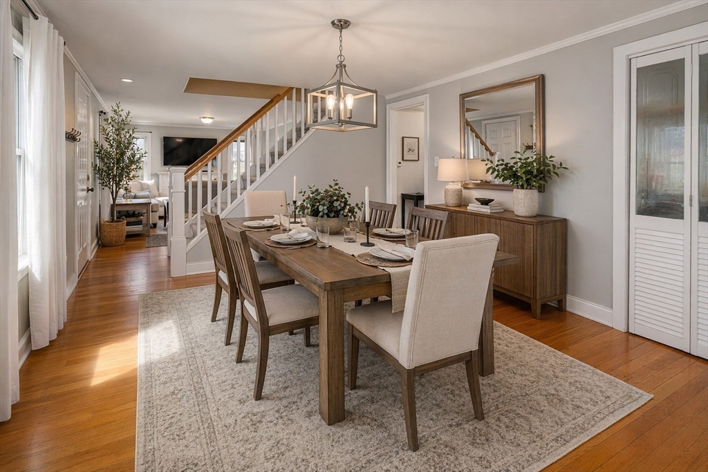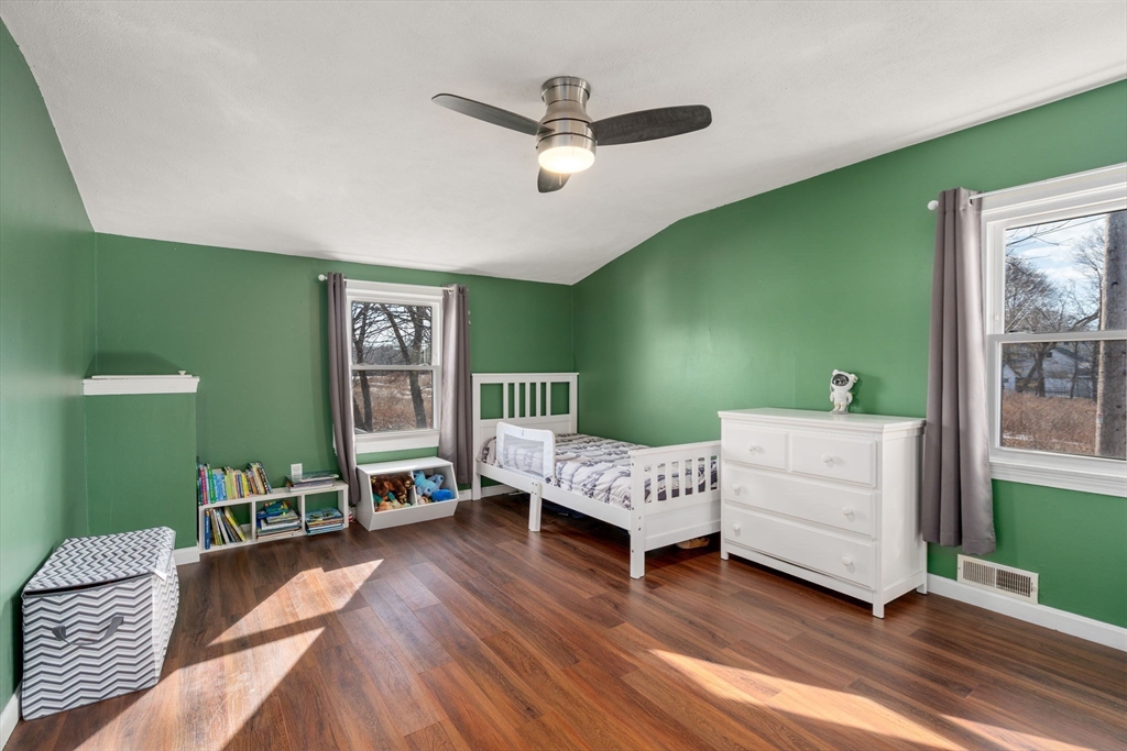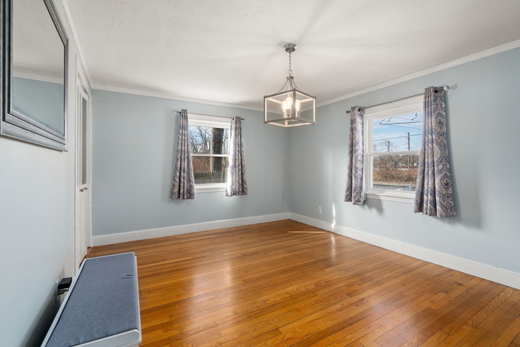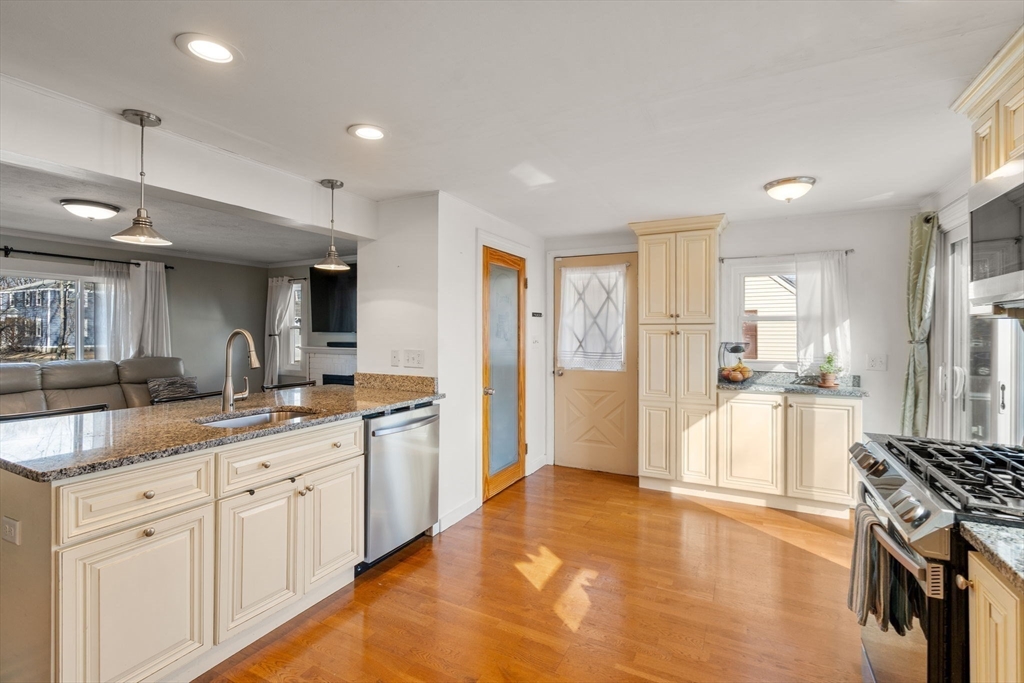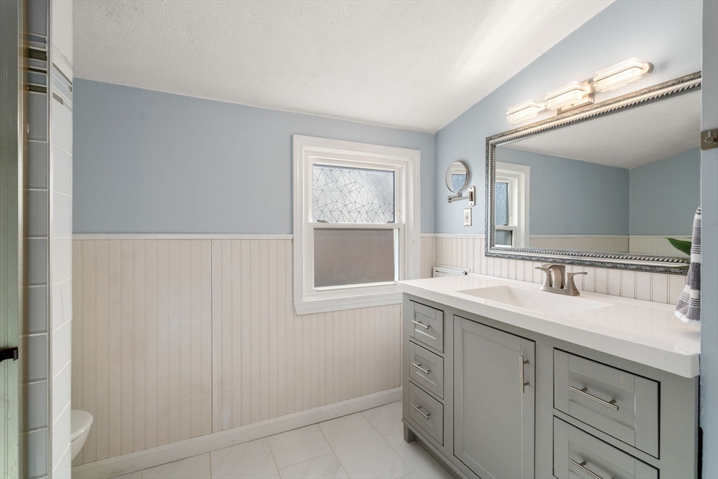 This inviting Peabody home offers 3 bedrooms and 2.5 bathrooms, hardwood floors, stainless steel appliances, and thoughtful updates, including renovated bathrooms, composite decking, and a patio. Enjoy easy indoor-outdoor living with a deck and patio overlooking a fenced yard, perfect for relaxing or entertaining. The finished basement adds flexible space with a bar area and bonus room, great for a playroom, office, or extra living space. Two driveways provide ample parking. Ideally located near shopping, dining, parks, highways, schools, and the scenic walking path around Brown’s Pond.