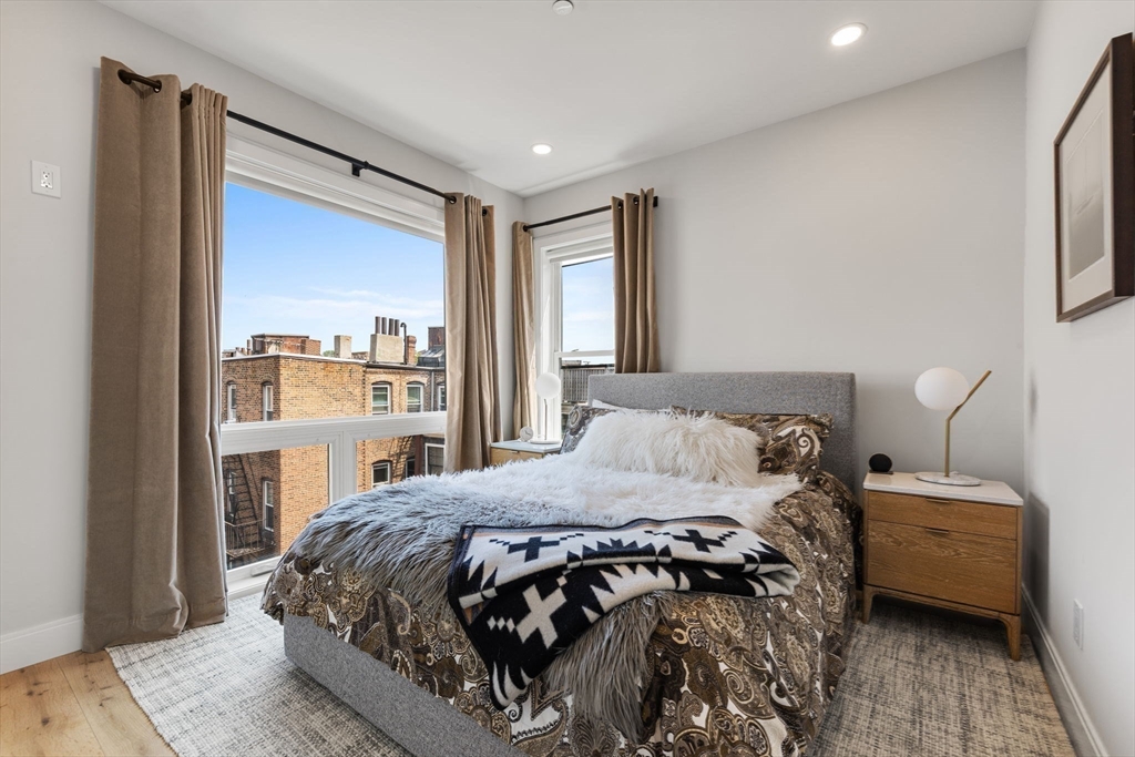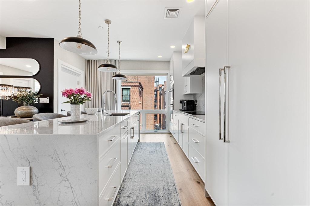 Rare opportunity! 3 bedroom, 2.5 bathroom w/ a private elevator to unit, deeded garage parking- easy access in and out, AND a private massive 500 sqft roof deck overlooking Boston's Historic North End and Downtown. Built in 2024, this new construction PH is only one of two units in the building. Offering an open concept floorplan w/ Sonos and outdoor speaker system. The perfect home for entertaining. Facing Southwest, enjoy your morning coffee while watching sunrise and sip on a glass of wine while it sets. Featuring custom cabinetry, Thermador paneled appliances, 8ft island, marble bathrooms, wide plank and oak hardwood flooring, electric blinds, soaring high ceilings, fireplace, floor-to-ceiling windows, and rooftop equipped with state of the art outdoor kitchen! Do not miss this opportunity.