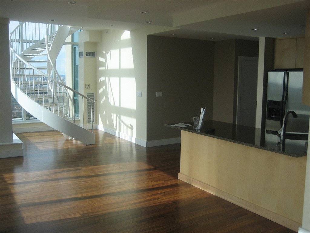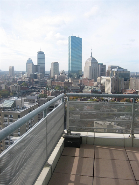 Rarely available corner 2 bedroom, 2 full bathroom Penthouse unit with sweeping southwesterly views of the Blue Hills and Copley with floor to ceiling windows and wrap around balcony. Tastefully upgraded with all HW floors, fantastic lighting scheme, custom cabinets, granite, stainless appliances, in-unit Bosch washer/dryer. Stone's throw to Tufts Medical & Dental, Theatre and Financial districts, public transportation, Boston Commons etc. 24/7 Concierge building with Butterfly intercom. two elevators for the condo side units. No pets allowed. 12 Month lease term. Heat & Hot Water included. Tenant to set up and maintain electricity and wifi/cable only!