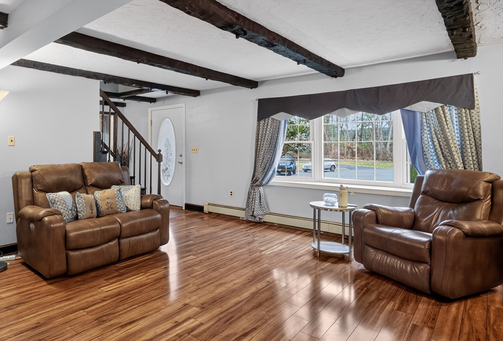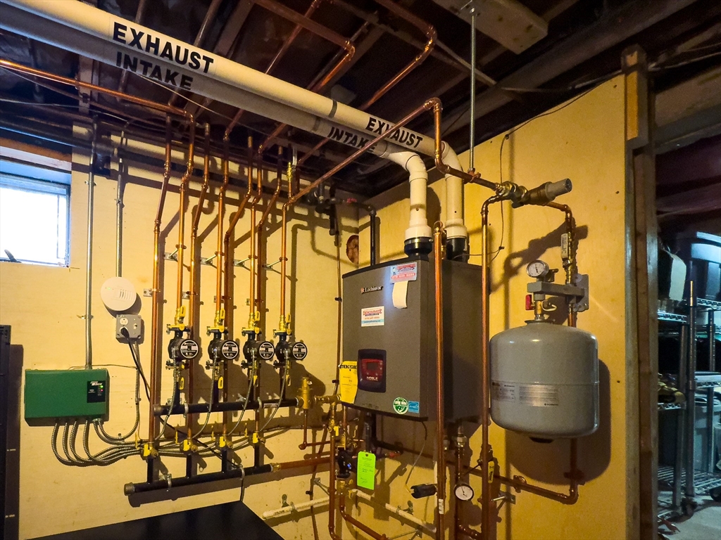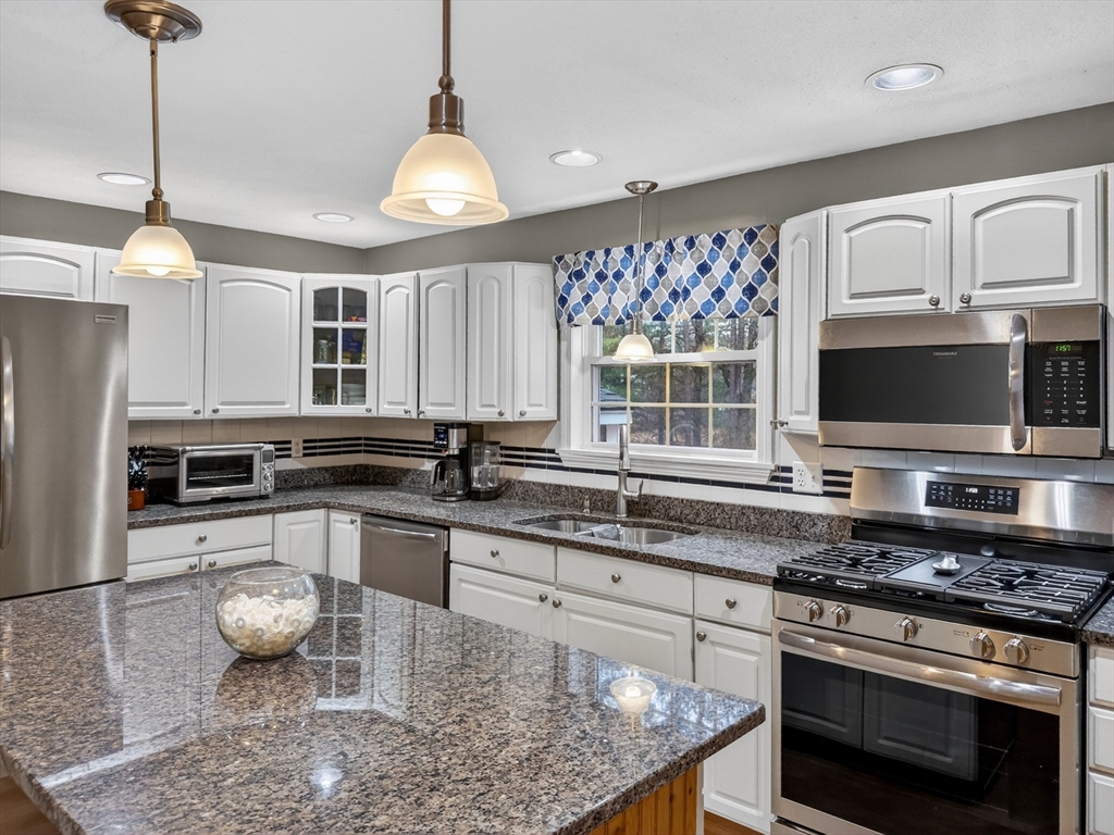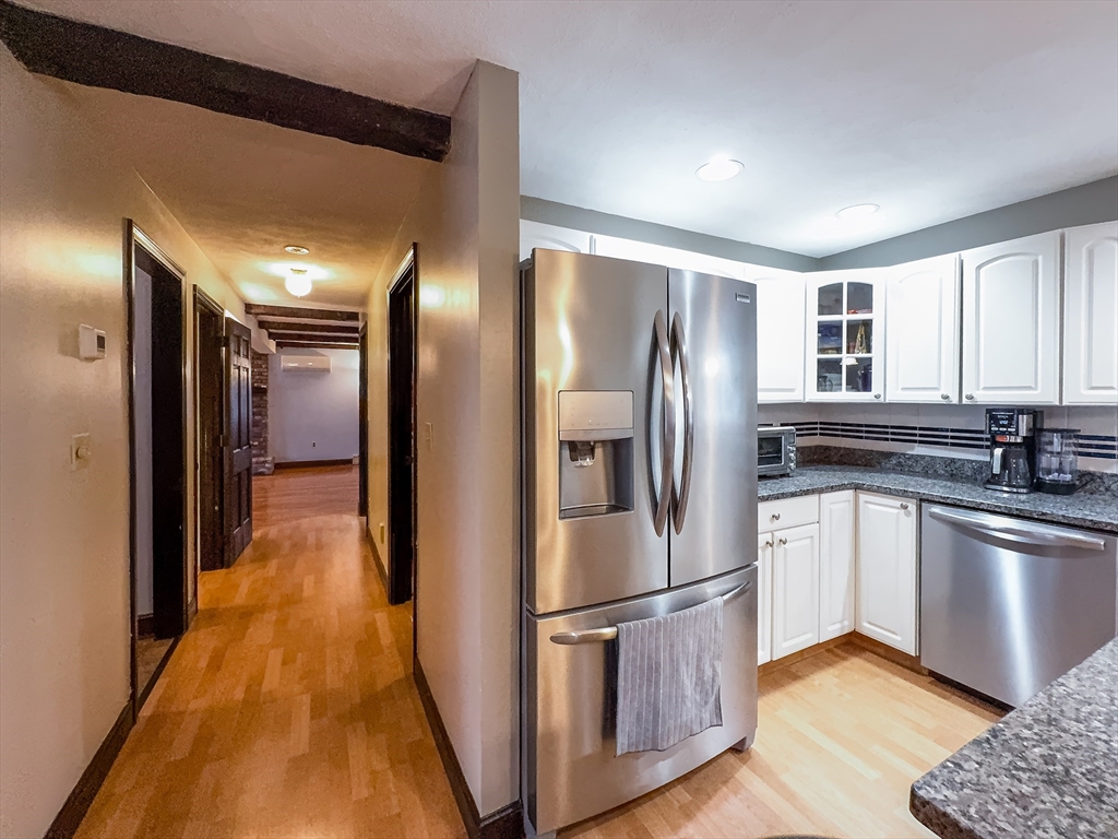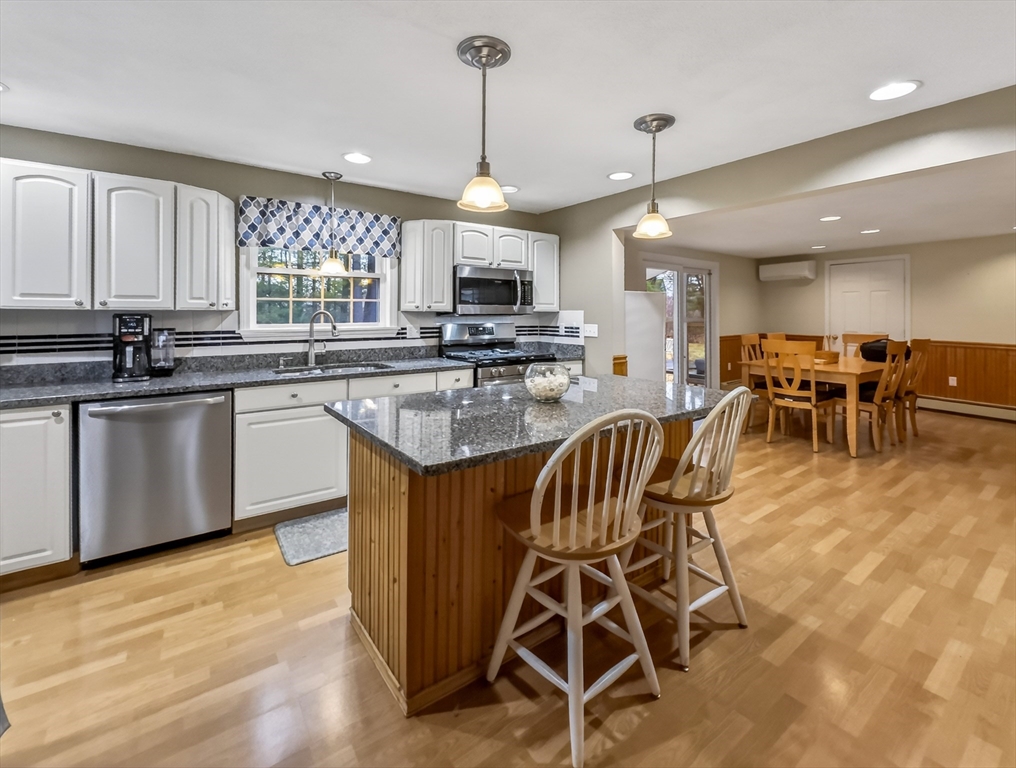 Multi-generational living or income potential! This well-maintained home features a fully separate apartment—perfect for extended family or rental income. The main home offers 3 bedrooms (with window seat nooks!), 2.5 baths, and a beautifully renovated, expanded kitchen with wainscot. There's also an enclosed patio, inviting living room with fireplace, elegant dining room also with wainscot, and convenient laundry room. The finished lower level includes a spacious family room with wood stove and dry bar as well as private office space. The apartment, with its own private entrance and deck includes 2 bedrooms, a full bath, well-designed kitchen, large living room, and in-unit laundry as well as storage. Additional highlights include a heated oversized garage, central air, high-efficiency Lochinvar wall-mounted boiler, new mini splits, and updated compressor. Set on a peaceful dead-end with a private, wooded yard and large storage shed, yet close to shopping, dining, and major routes