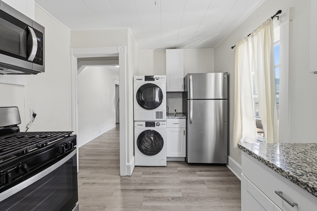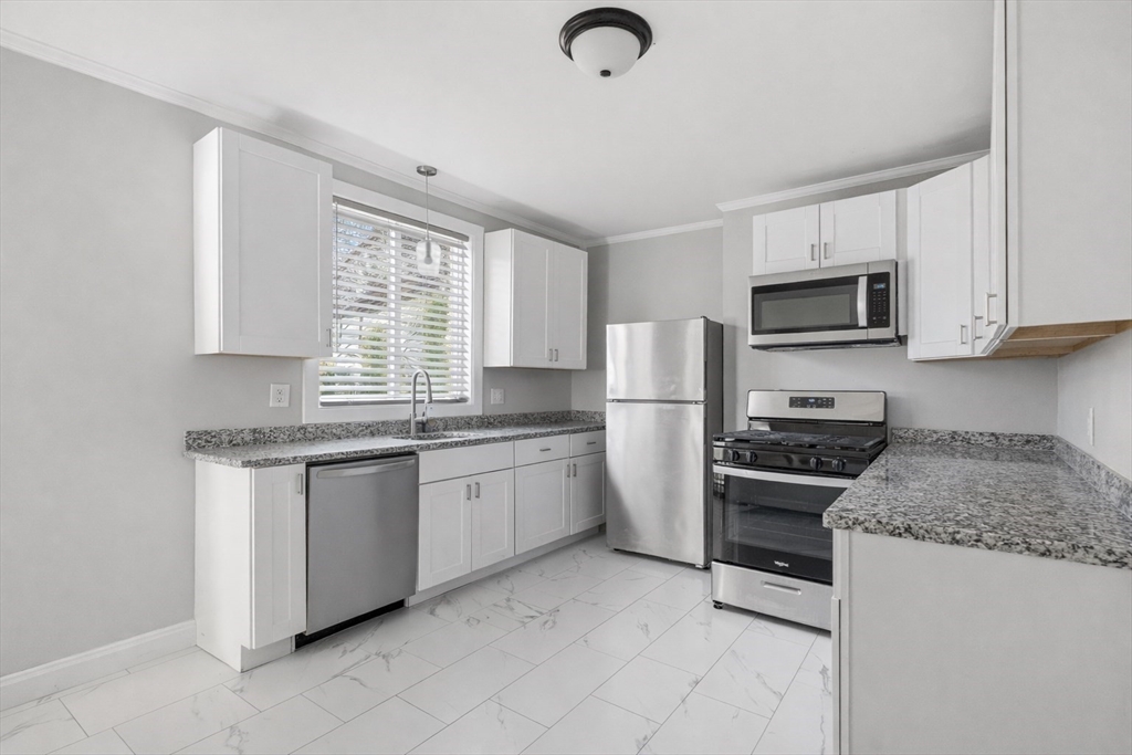 Welcome to 28 Borden—an impeccably renovated two-family home offering both style and flexibility. The first-floor unit features 2 spacious bedrooms with hardwood floors, an updated kitchen and bath with granite countertops, tile flooring, and stainless steel appliances, plus a sunroom and access to a partially finished basement with washer/dryer.The second-floor unit offers 4 bedrooms with new vinyl plank flooring, an updated kitchen with granite and stainless steel appliances, and in-unit laundry. Delivered vacant, it’s ideal for owner-occupants or additional rental income.Additional features include a new roof, new windows, a newly fenced yard, and parking for 4 cars. Located on a corner lot near Buttonwood Park. Seller reserves the right to accept an offer at any time.
