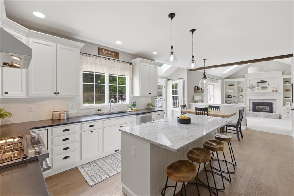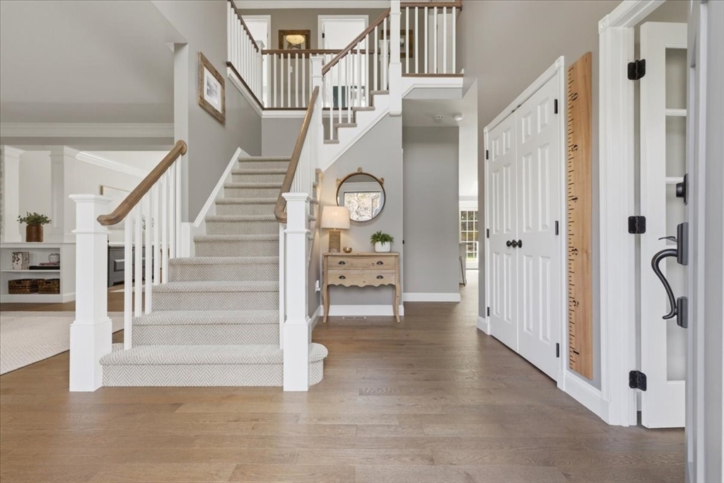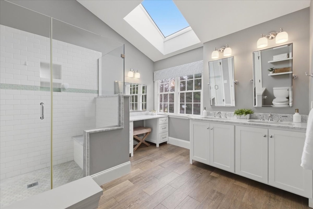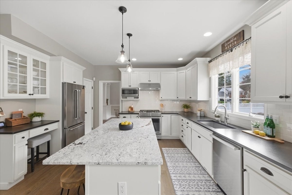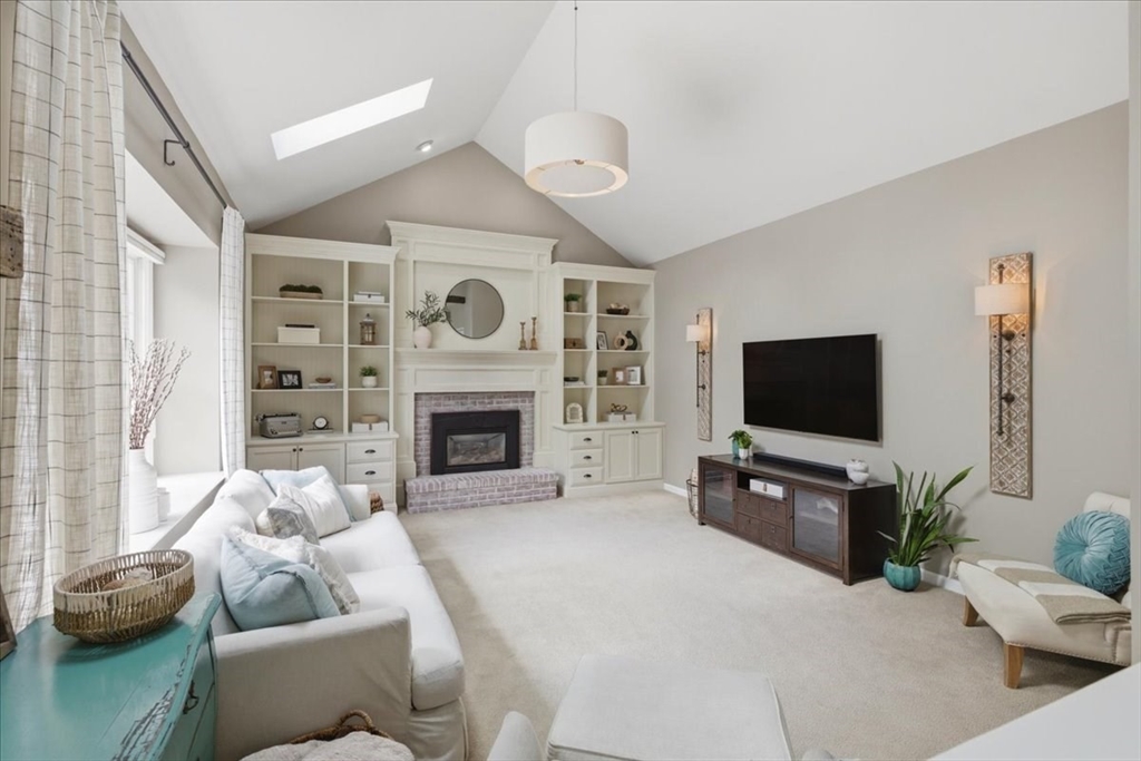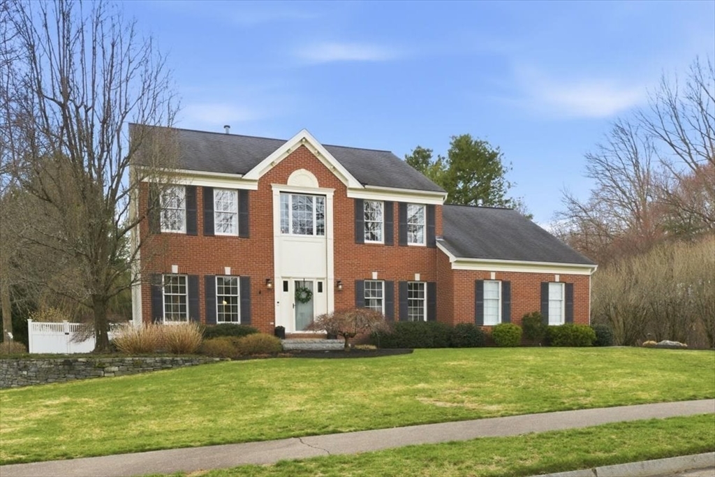 Welcome to this beautifully updated brick-front Colonial, located next to a cul-de-sac in sought-after Franklin Oaks! The main level features wide plank hardwood floors, an open living/dining area w/decorative molding, a private home office w/French doors, and a mudroom w/built-in storage. The updated kitchen offers white cabinetry, leathered granite, stainless appliances, tile backsplash, island, and skylight that fills the space with natural light. The inviting family room boasts cathedral ceilings, a gas fireplace, skylights, and custom built-in bookcases. Upstairs, the primary suite includes a luxurious bath w/heated tile floors, double vanity, oversized tiled shower, & laundry in the walk-in closet. Three additional bedrooms & full bath complete the second floor. Finished lower level adds a bedroom, full bath, media room, & flexible space. Step outside to your own backyard haven complete w/an in-ground pool, hot tub, fenced yard, composite deck, & patio, perfect for entertaining.