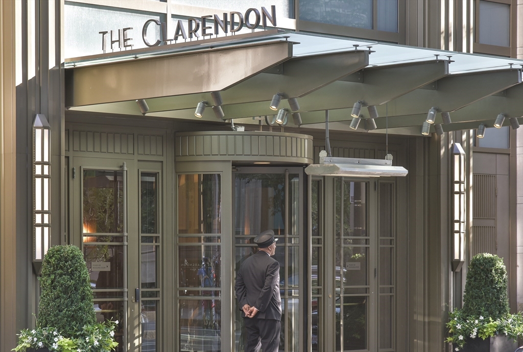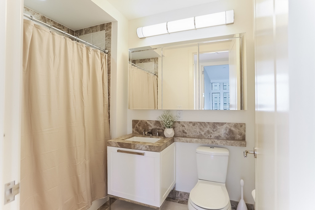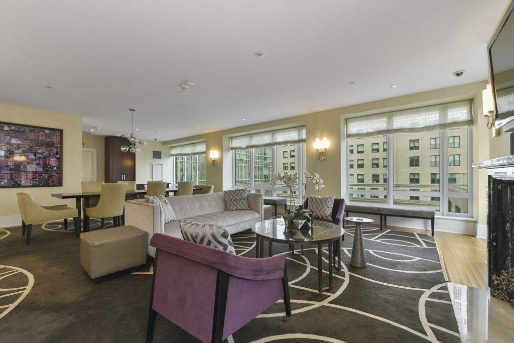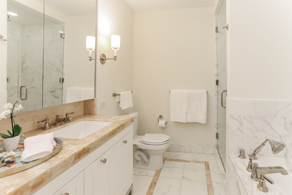 The Clarendon offers sophisticated full service living and dramatic city views in Boston's Back Bay. Designed by architect Robert A.M. Stern, this highly sought after and celebrated luxury tower includes 24-hour doorman and concierge, culture and entertainment lounges, children's play area, landscaped terrace, private gym and onsite restaurant. This 18th floor, corner residence boasts 2 bedrooms and 2 full bathrooms. The open kitchen, living/dining area is highlighted by floor to ceiling windows on the southern and eastern exposures, which provide wonderful natural light and vantages to the South End and City beyond. Main bedroom faces South and offers walk-in closet, large windows, and additional closet outside master bath - featuring marble soaking tub, double vanity, and walk-in shower. Comfortable second bedroom faces East with views of Back Bay. Guest bathroom with shower/tub located across the hall. In unit laundry, coat closet and 1 valet garage spot complete this home!