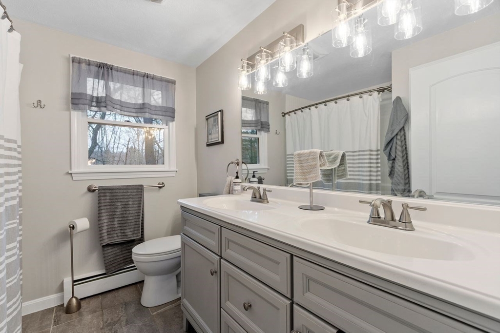 Charming three-bedroom, one-and-a-half-bath colonial nestled in a private, tranquil setting. The home blends classic charm with thoughtful updates: a formal living room and dining room greet you, while a cozy family room with a fireplace provides a welcoming gathering space. The updated kitchen shines with quartz countertops, a breakfast bar, stainless steel appliances, and recessed lighting. Upstairs, you’ll find spacious bedrooms and a renovated bath, complemented by a finished lower level that adds a versatile bonus room and a second room currently used as a bedroom, ideal for an office or guest space. Outside, enjoy a screened porch and abundant privacy, plus practical touches like a shed and extra parking at the top of the driveway. Recent updates include vinyl siding, a new roof, a new furnace, and refreshed kitchen and baths, making this home move-in-ready.