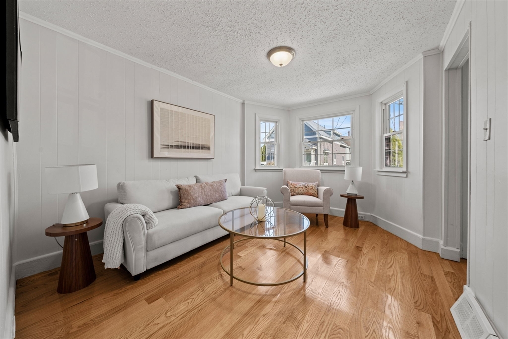 Perfect opportunity to enter the real estate market in this turn key condo alternative offered at an unbeatable price. Featuring an updated kitchen, brand new hardwood floors and a beautiful new full bathroom, this sweet home is ready for occupancy. The floorplan boasts a sunny living room, eat-in kitchen, full bath and 2 bedrooms on the second level. A full basement allows for ample storage, laundry and updated utilities. Enjoy a private back yard and a fully fenced in lot. The home sits in a neighborhood with close access to many restaurants and amenities while being just a short distance to the Lowell Connector.