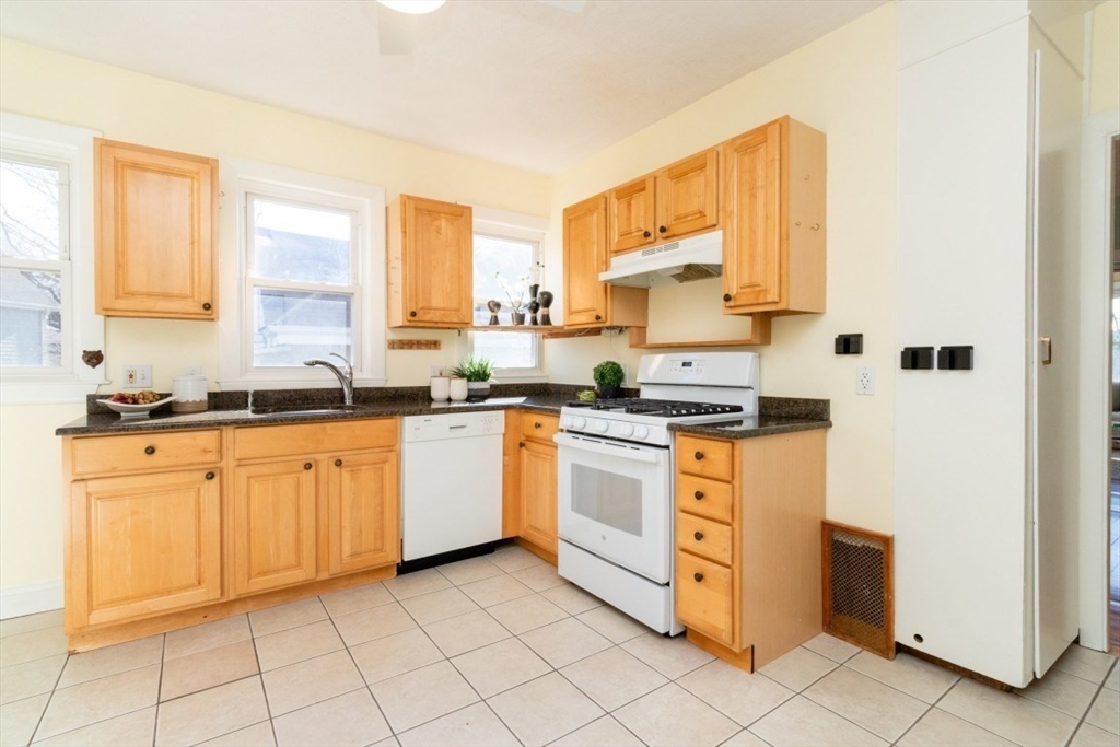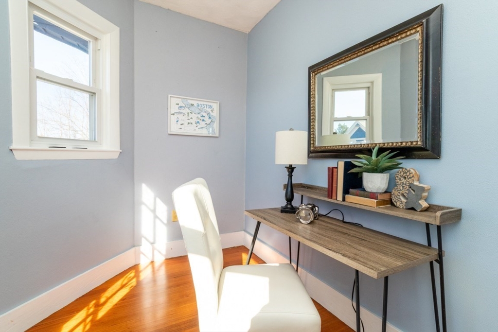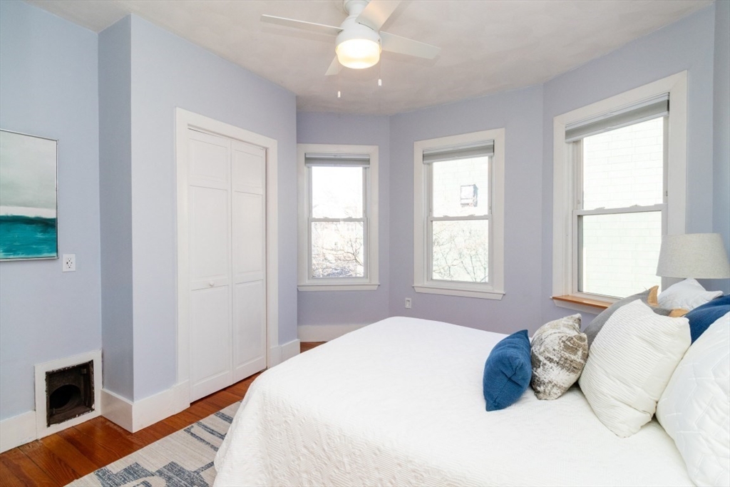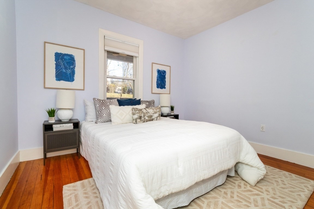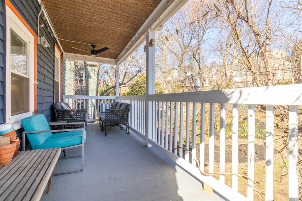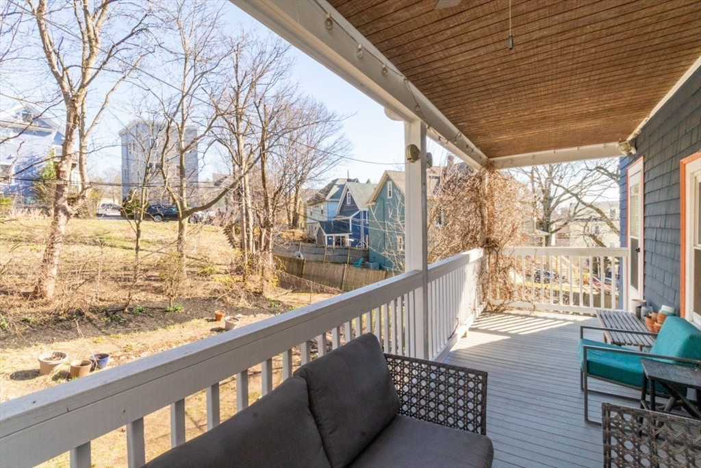 Set on a quiet street in Jamaica Plain’s Forest Hills neighborhood, this 2nd-floor condo offers a practical, comfortable layout. The living and dining areas flow easily, with original wood floors and a built-in hutch that adds character and storage. The kitchen is beautifully finished with ample cabinetry, appliances, and a pantry. Both bedrooms are well-sized w/ closets, plus a bonus room ideal for a home office, workout space, or guest area. Laundry is in the basement w/ a dedicated washer and dryer for the unit. Enjoy a large private front porch, private front deck, private rear deck, and shared fenced yard. Deeded garage parking plus on-street permit parking. Recent updates include new heating & cooling (2025) and water heater (2024). Close to Parkman Playground and the Arboretum. Move-in ready and very low taxes! A strong sense of community w/ neighborhood events, this was the former home of the Wenham Street Cinema!