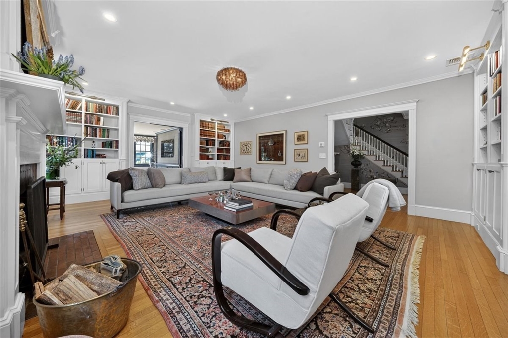 This iconic Hingham gem sits on a gentle knoll overlooking Historic Lincoln Street on 1.83 acres of private,professionally landscaped grounds just steps from Hingham Square.Renovated in 2022,it blends historic character with refined luxury.Designer curated interiors feature high ceilings,wood floors,period moldings,built-ins,and three fireplaces,creating exceptional craftsmanship and open,light-filled living spaces.The flowing plan includes a sophisticated yet welcoming fireplaced living room,elegant dining room and sunfilled family room.Custom chef’s kitchen opens to a casual dining area and solarium for seamless indoor-outdoor living.All bedrooms are ensuite, including a retreat-like primary suite with coffered ceiling,fireplace,2 walk-in closets,and a luxurious bath.LL offers finished space with bedroom,kitchenette, living room.Outdoors enjoy front porch,stone patios,saltwater pool & spa,vegetable beds and a fruit orchard.There's an on site Irrigation well for this year round oasis!