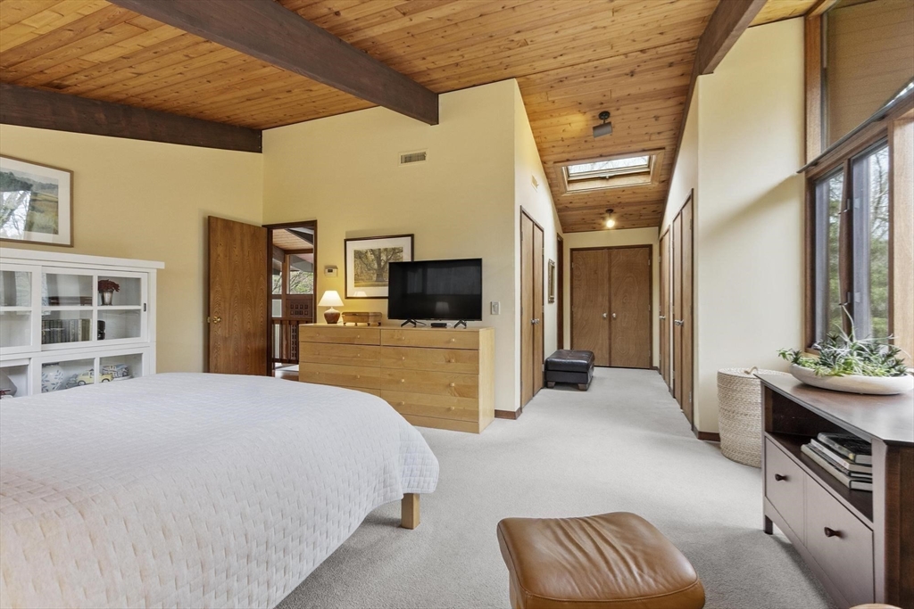 Beautifully sited on a 2 + acre lot you’ll find this expansive custom built Deck house bringing the outdoors in with walls of glass. The updated eat-in kitchen offers large island, induction stove, double ovens and ample cabinetry. Adjacent to the kitchen are the open dining and living rooms with soaring ceilings and wood burning fireplace open to the deck. An additional enclave with built-ins is perfect for a sitting area or piano. The primary suite is generous in size with an updated bath and plenty of closets. Enjoy a meal or relax on the screen porch. The family room with fireplace, three family bedrooms and full bath are located in the lower level with access to the patio and spacious level backyard. Plenty of storage throughout and hidden workshop in the basement. Three car garage. This lay out offers the opportunity for one level living if desired. Located near Mattison field with extensive trails, Verrill Farm, White Pond, and elementary school. Also near Routes 2 and 117.