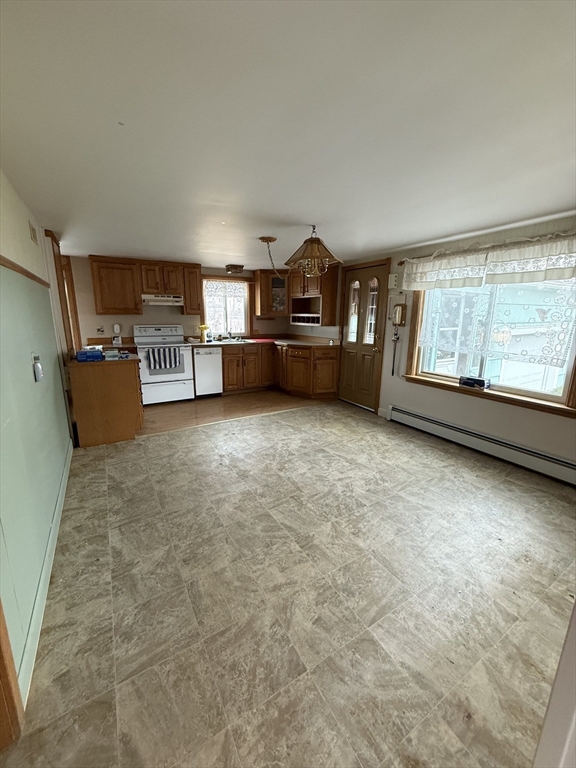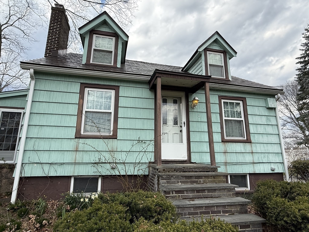 Endless possibilities with this charming Cape-style home! Bring your vision and make it your own. Features include a large eat-in kitchen, living room with a wood-burning fireplace, and a glass-enclosed patio with a separate entrance. Recent updates include a newer boiler, water system, and durable metal shingle roof. Beautiful yard with established perennial plantings. Great potential inside and out!