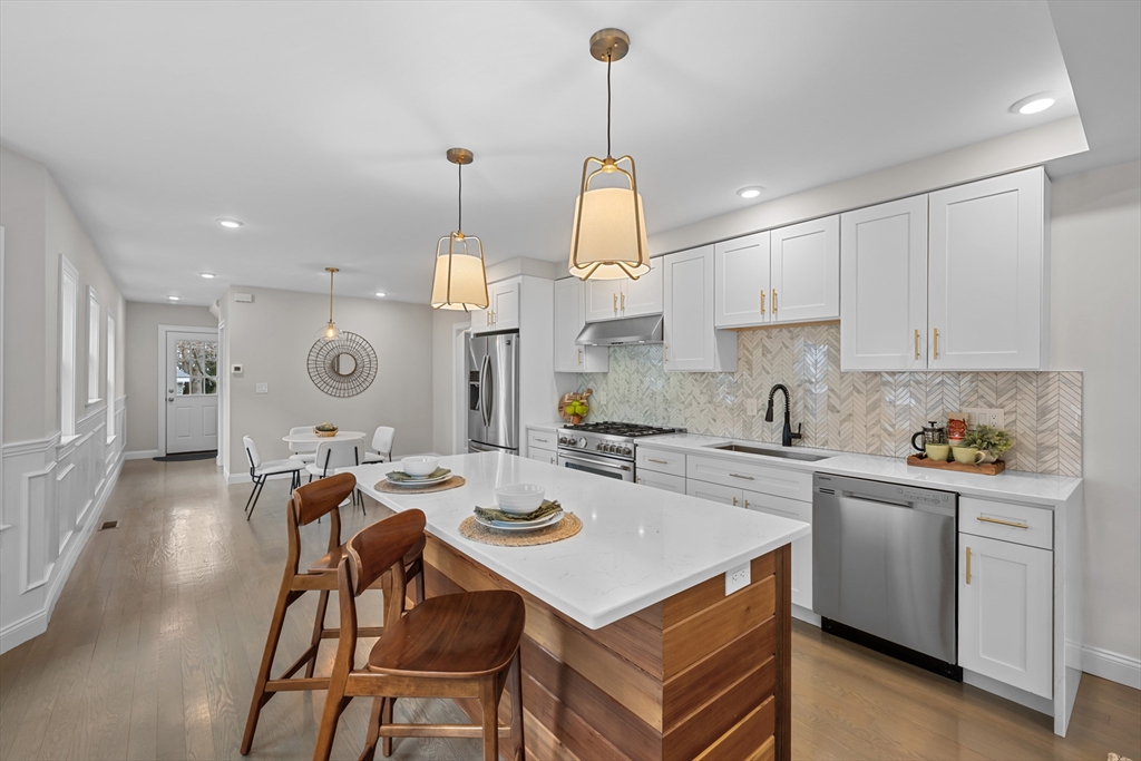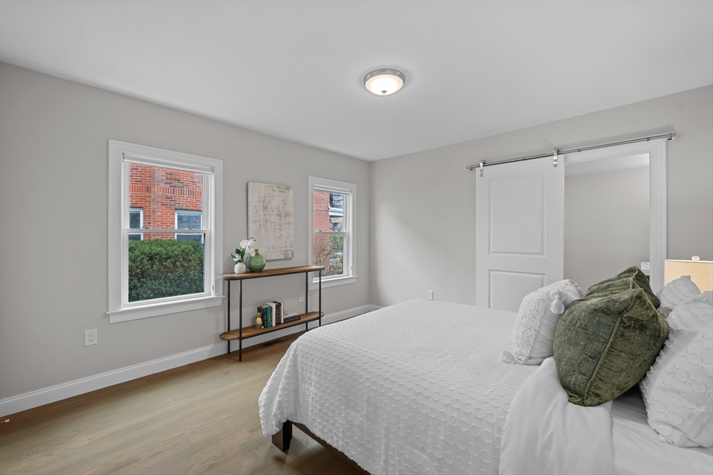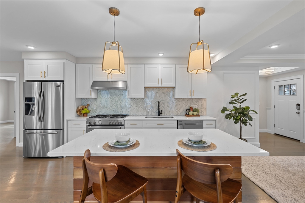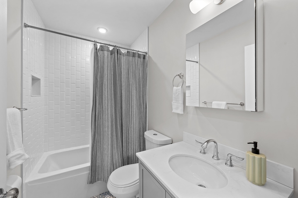 Ideally located on a quiet, tree-lined street in sought-after East Arlington, this beautifully updated 4 bed, 3 bath condo offers over 2,100 sq ft across two levels. Moments to Arlington Center, Mass Ave, public transportation, and the Minuteman Bikeway with easy access to Cambridge/Boston. The main level features a sun-filled living/dining area and a designer kitchen with quartz countertops, custom cabinetry, and a 36” Bertazzoni range. Spacious primary suite with custom closet, en suite bath, plus an additional bedroom and full bath. The lower level offers two bedrooms, full bath, and a versatile family room ideal for guests, or additional living space. Enjoy central air, a Navien tankless hot water system, private outdoor space, garage parking, and additional off-street parking. Close to shops, restaurants, parks, and Spy Pond. Welcome Home!