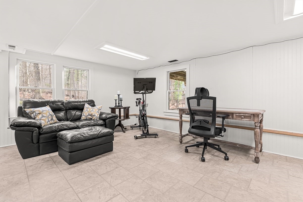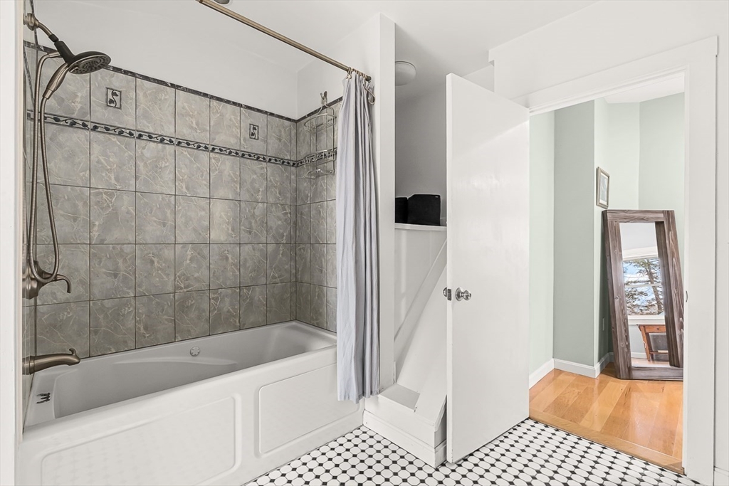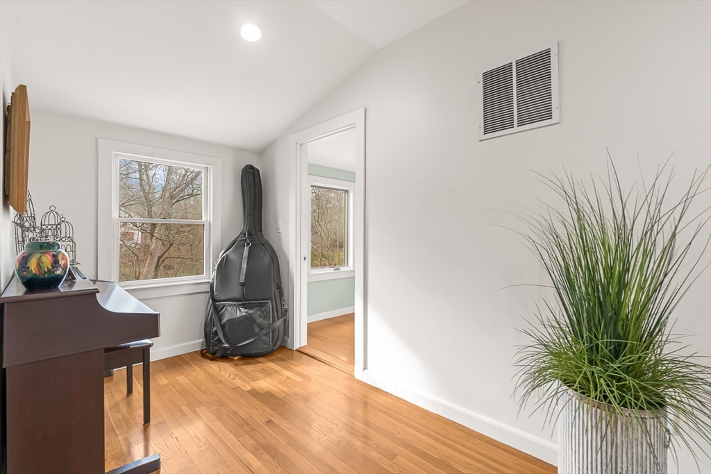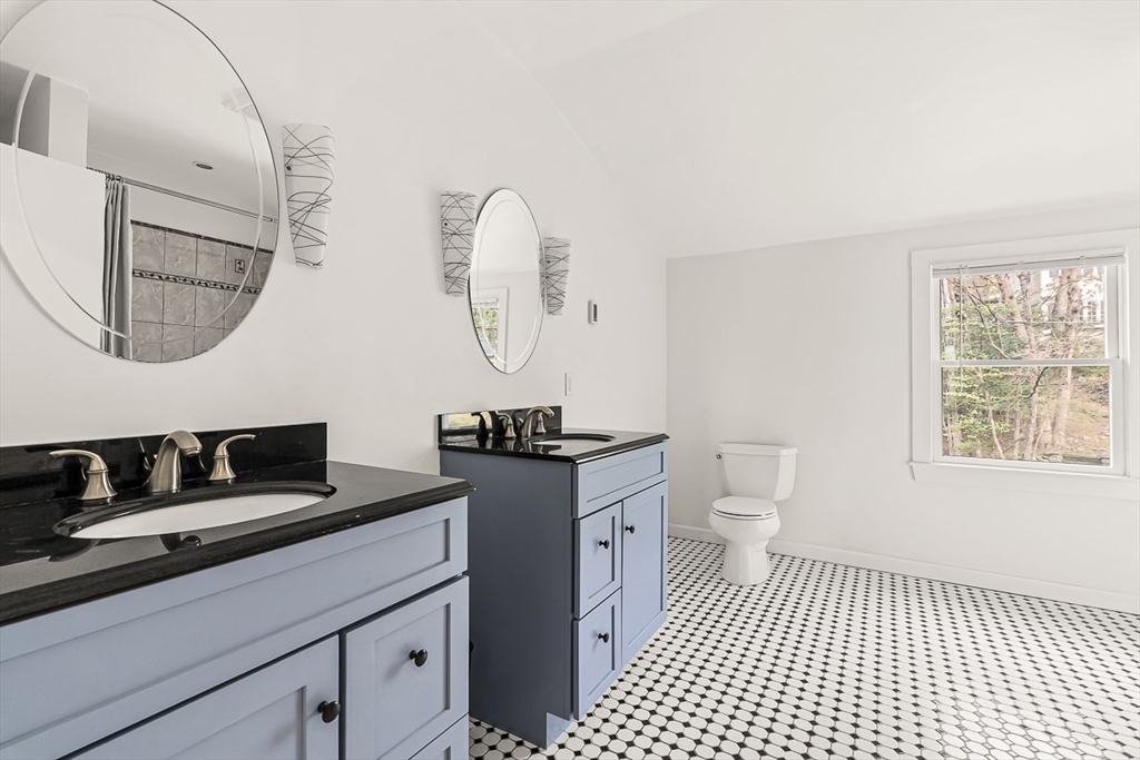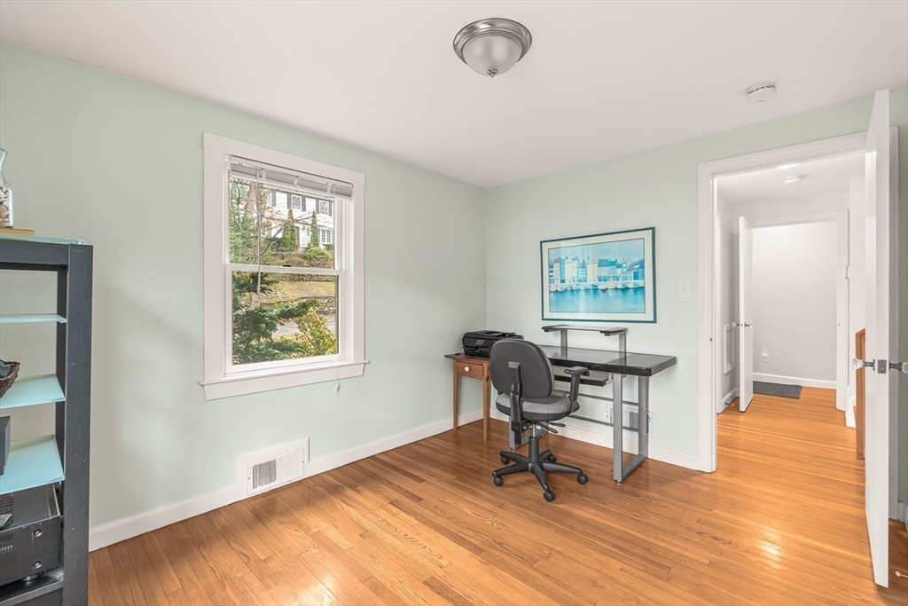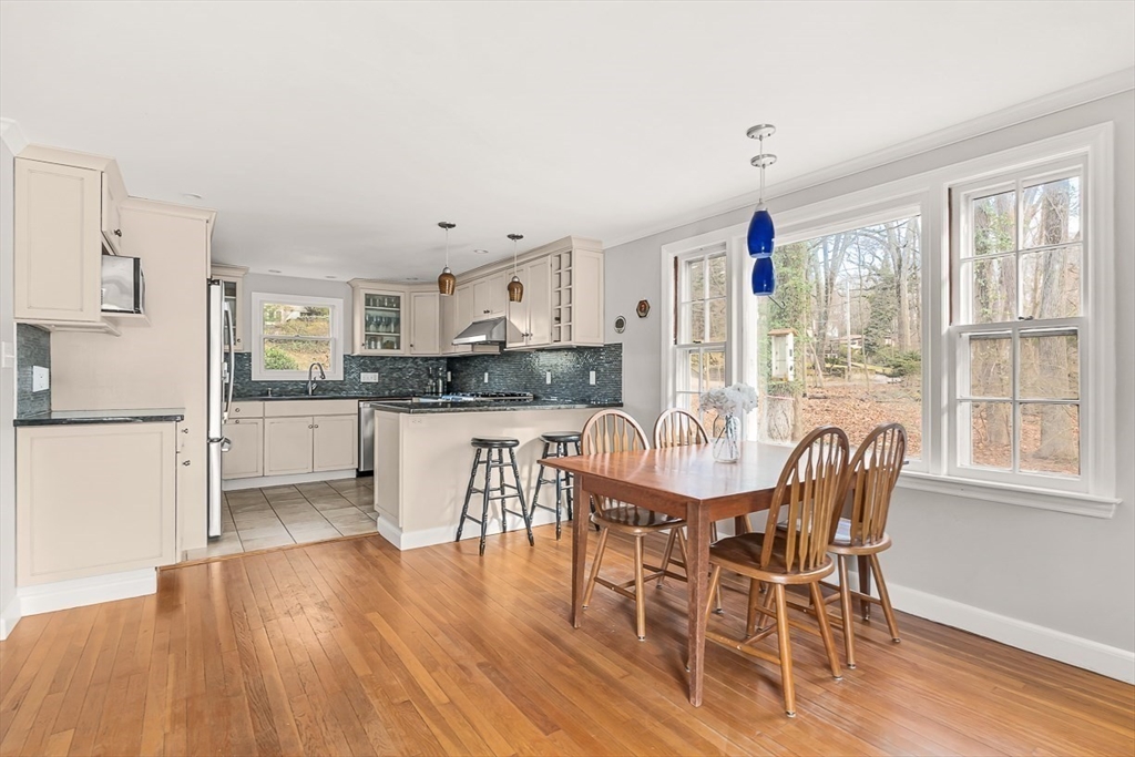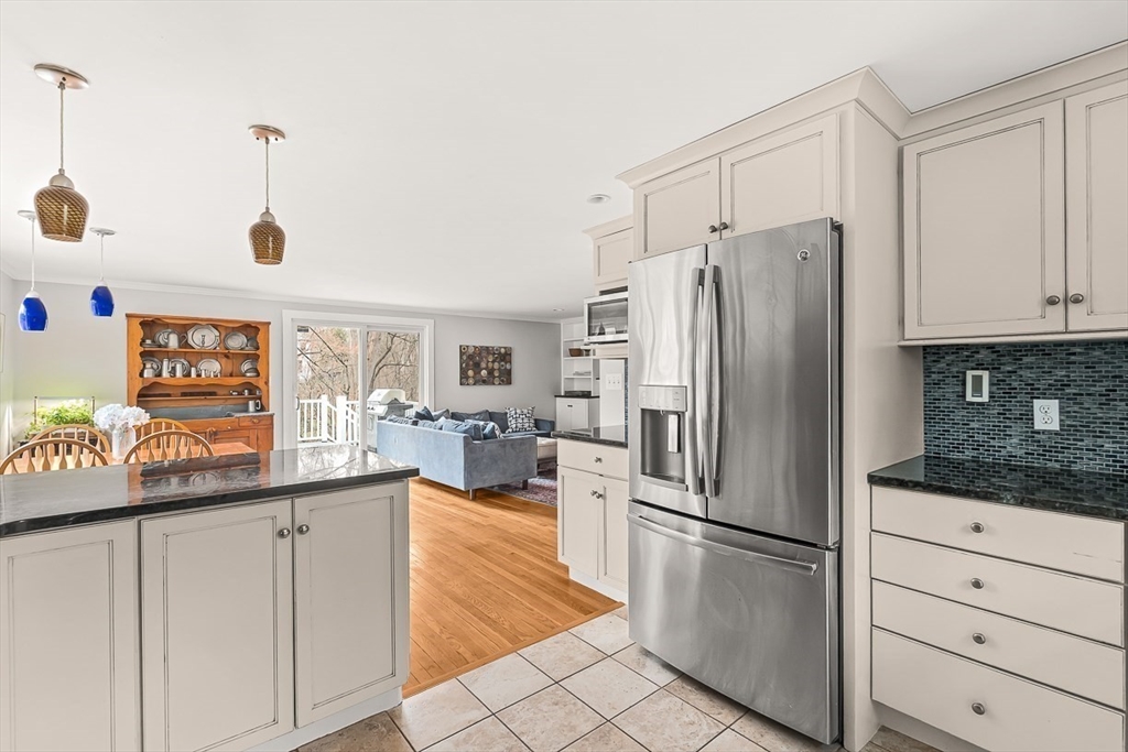 Tucked away on a quiet street just moments from the Farms train, Warren park, and Lower Falls restaurants, and set on a beautiful lot, this property is lush, private, and perfect for indoor/outdoor living. Renovated in 2010, the home features an open concept kitchen/dining area and family room with gas fireplace, seamlessly connecting to a deck that overlooks a nature surrounded backyard. Two bedrooms and a full bath round out the the main floor—ideal for family, guests, home office space, or versatile living. Upstairs features a primary suite with a spacious full bath and large walk-in closet, offering a comfortable retreat in a addition to a second bedroom and a light filled landing with room for a desk or seating area. The lower level offers a bonus room perfect for a playroom, gym, or home office. A special offering in a quiet Farms location—combining charm, functionality, and a truly beautiful setting
